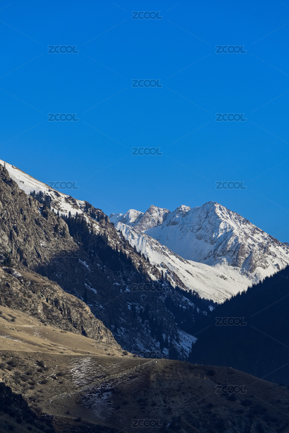 中国新疆那拉提雪莲谷雪山草地自然风光