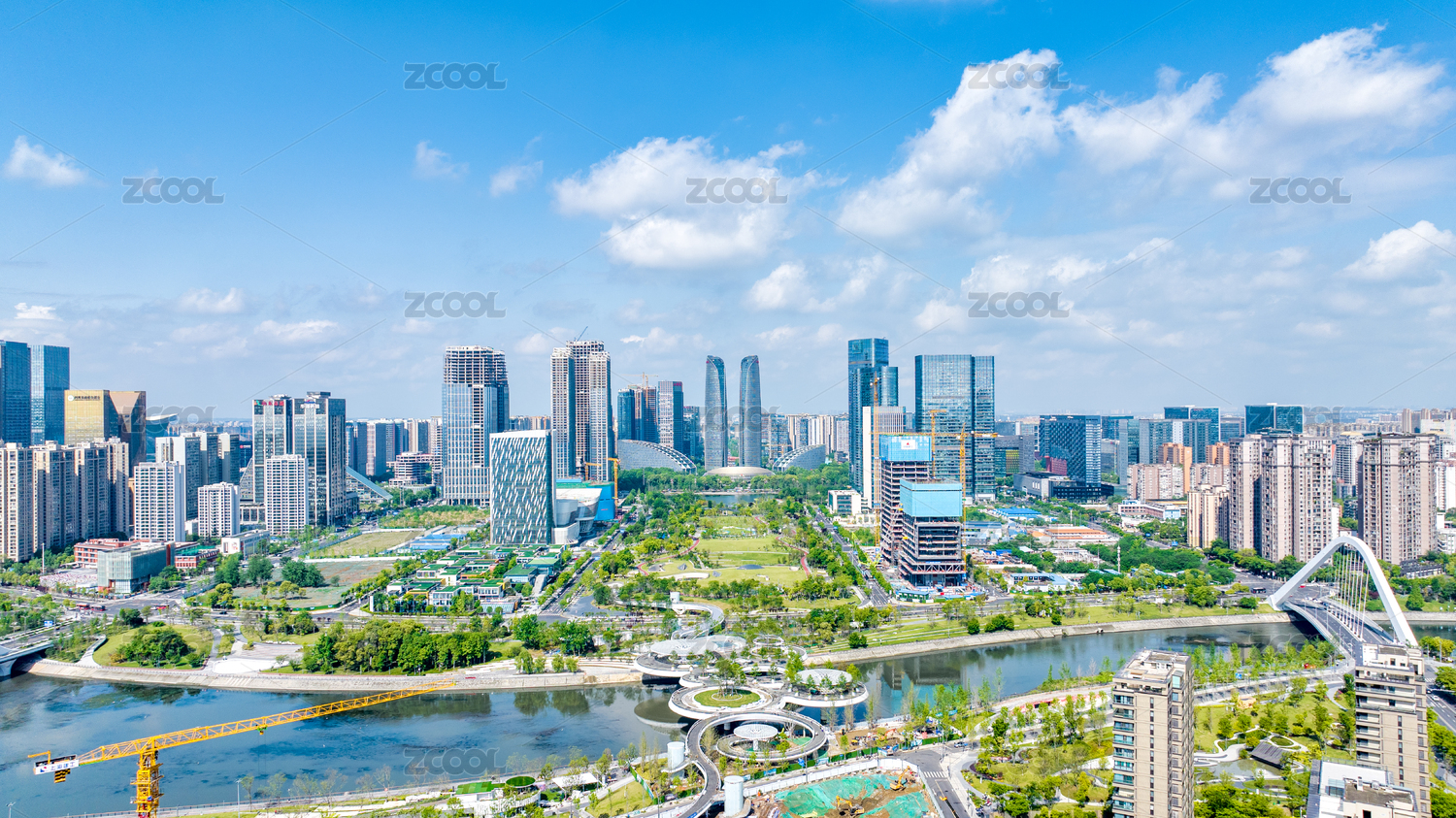 成都高新区四川省文化艺术中心新川公园航拍
