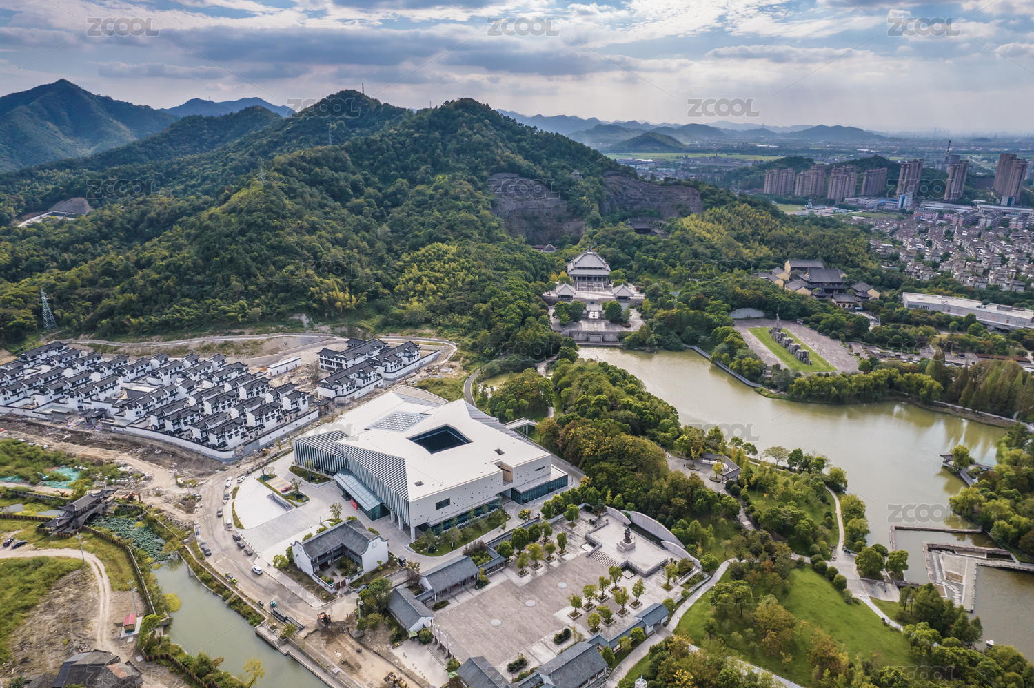 中国浙江绍兴上虞航拍城市风光--中华孝德园
