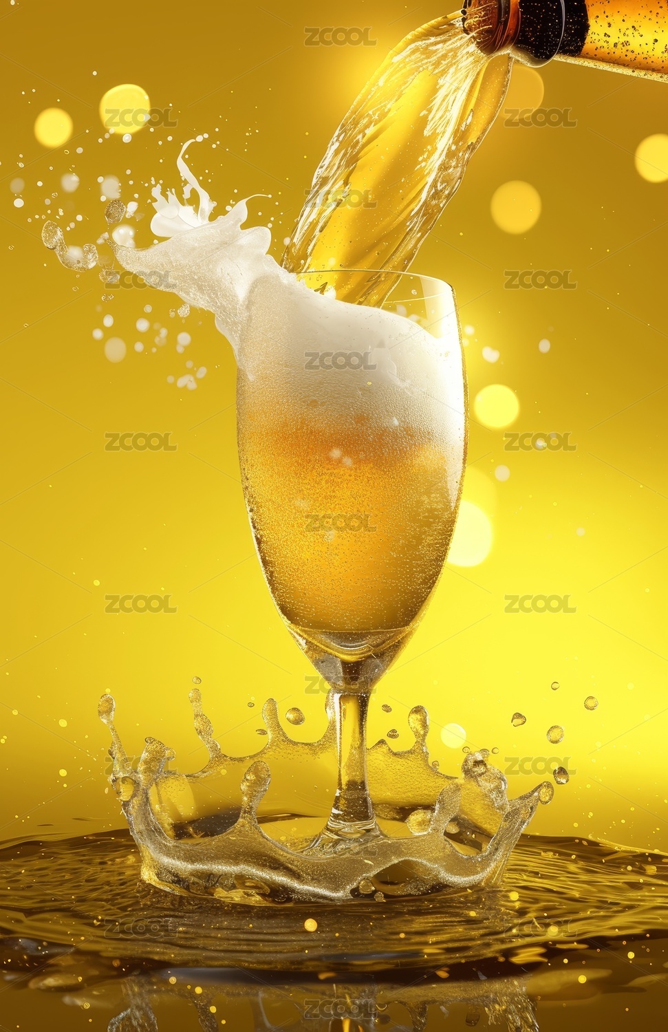 啤酒倾注飞溅特写画面