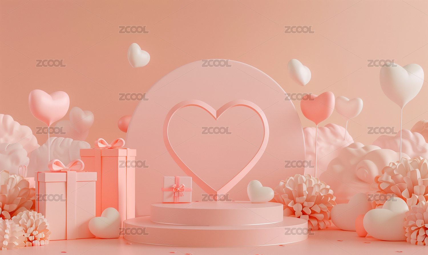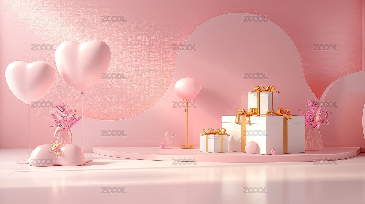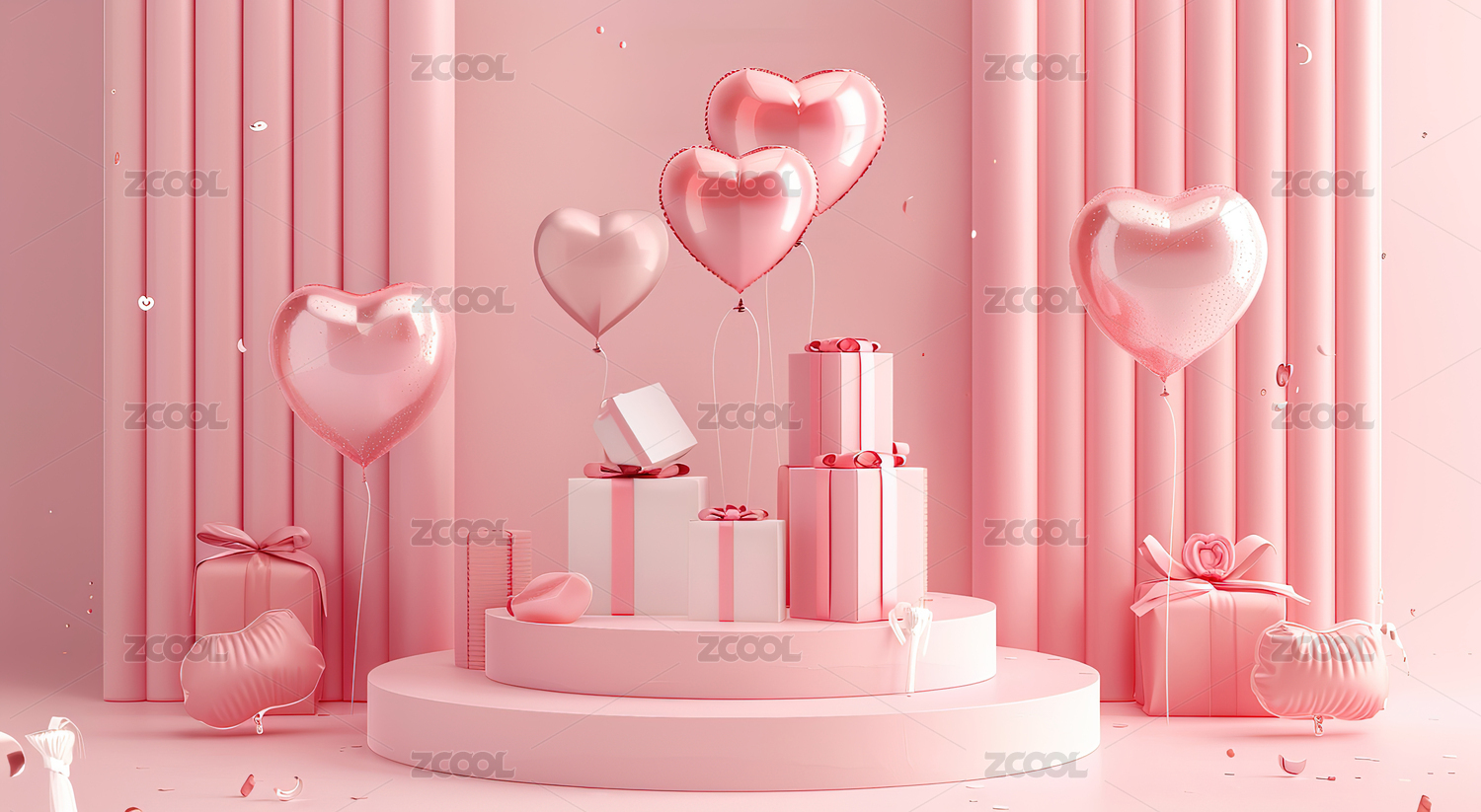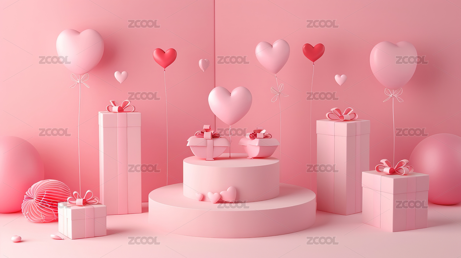 七夕情人节带气球的礼物盒展台爱情主题背景