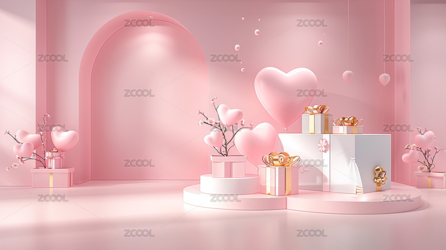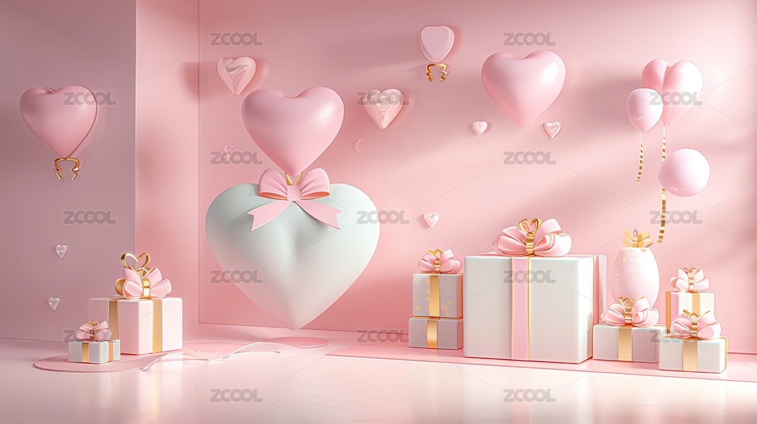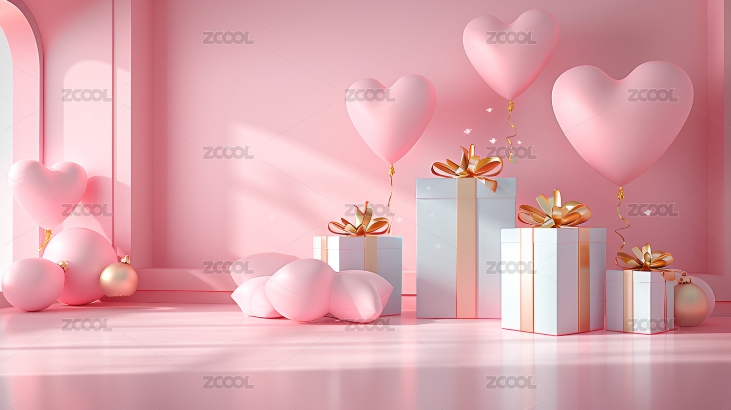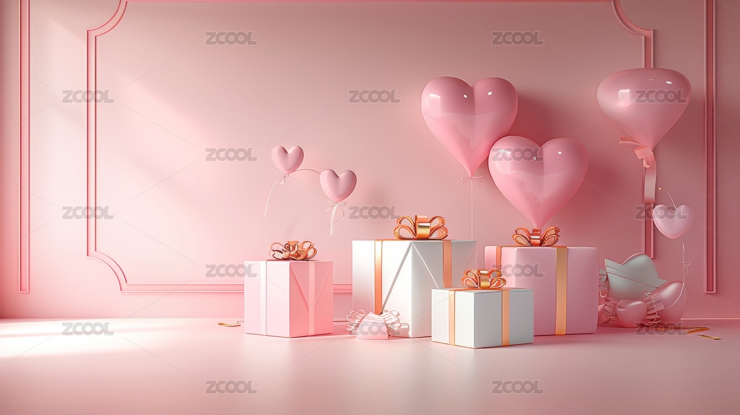 七夕情人节带气球的礼物盒展台爱情主题背景