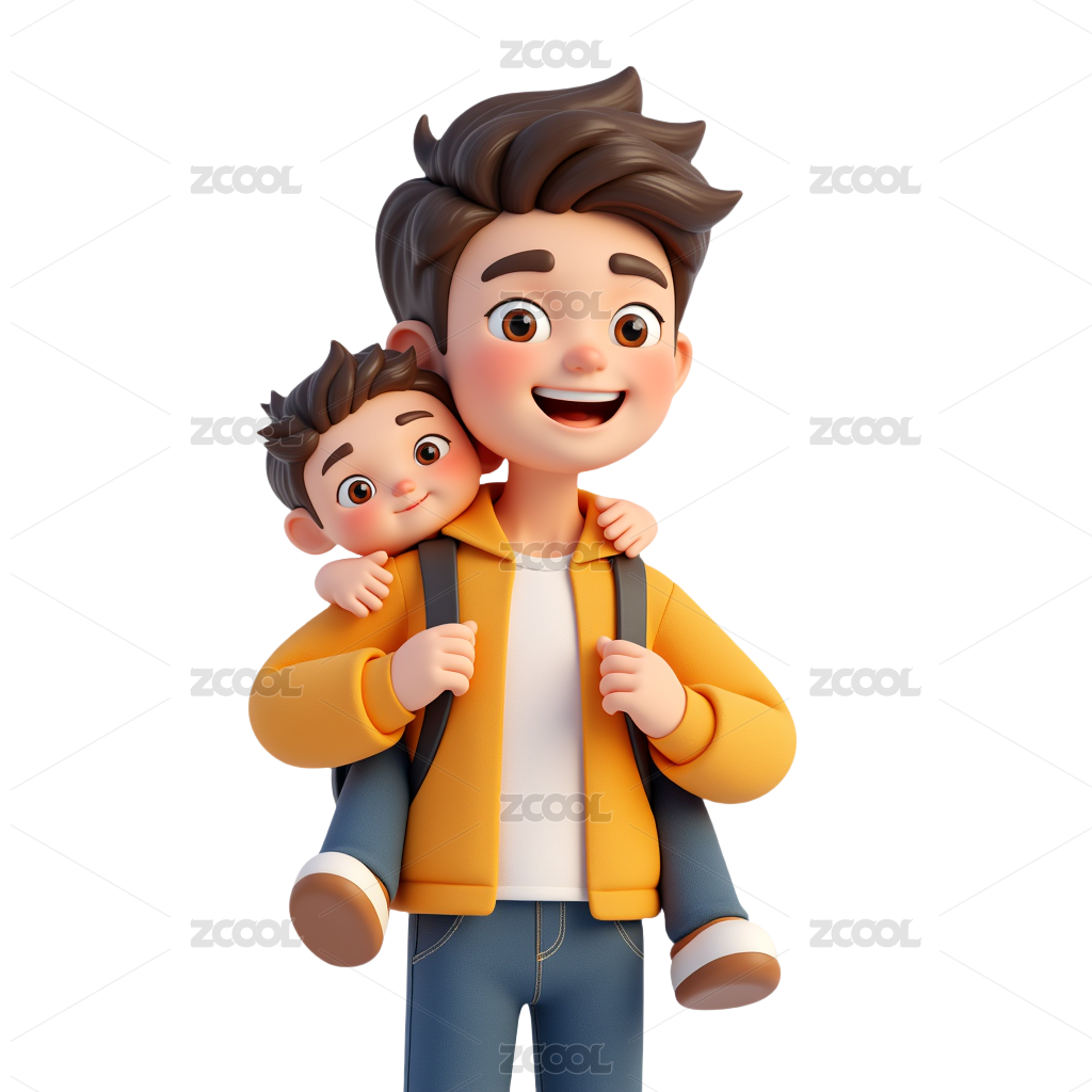 卡通儿童节父亲节亲子玩乐超人爸爸父爱插画