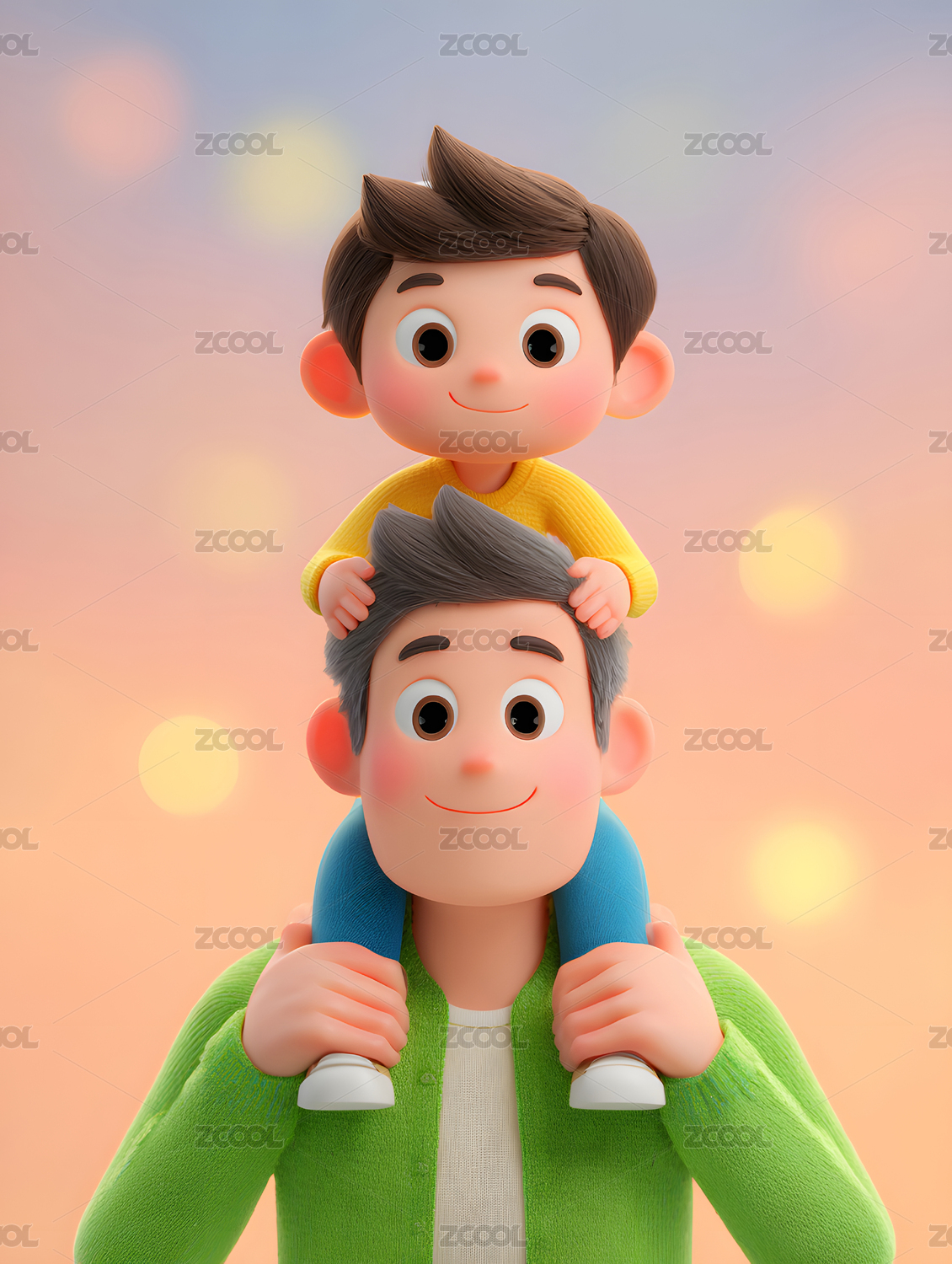 卡通儿童节父亲节亲子互动玩乐爸爸父爱插画