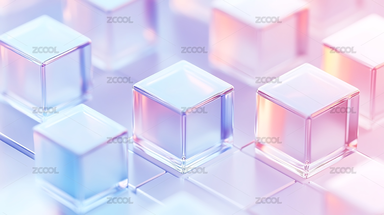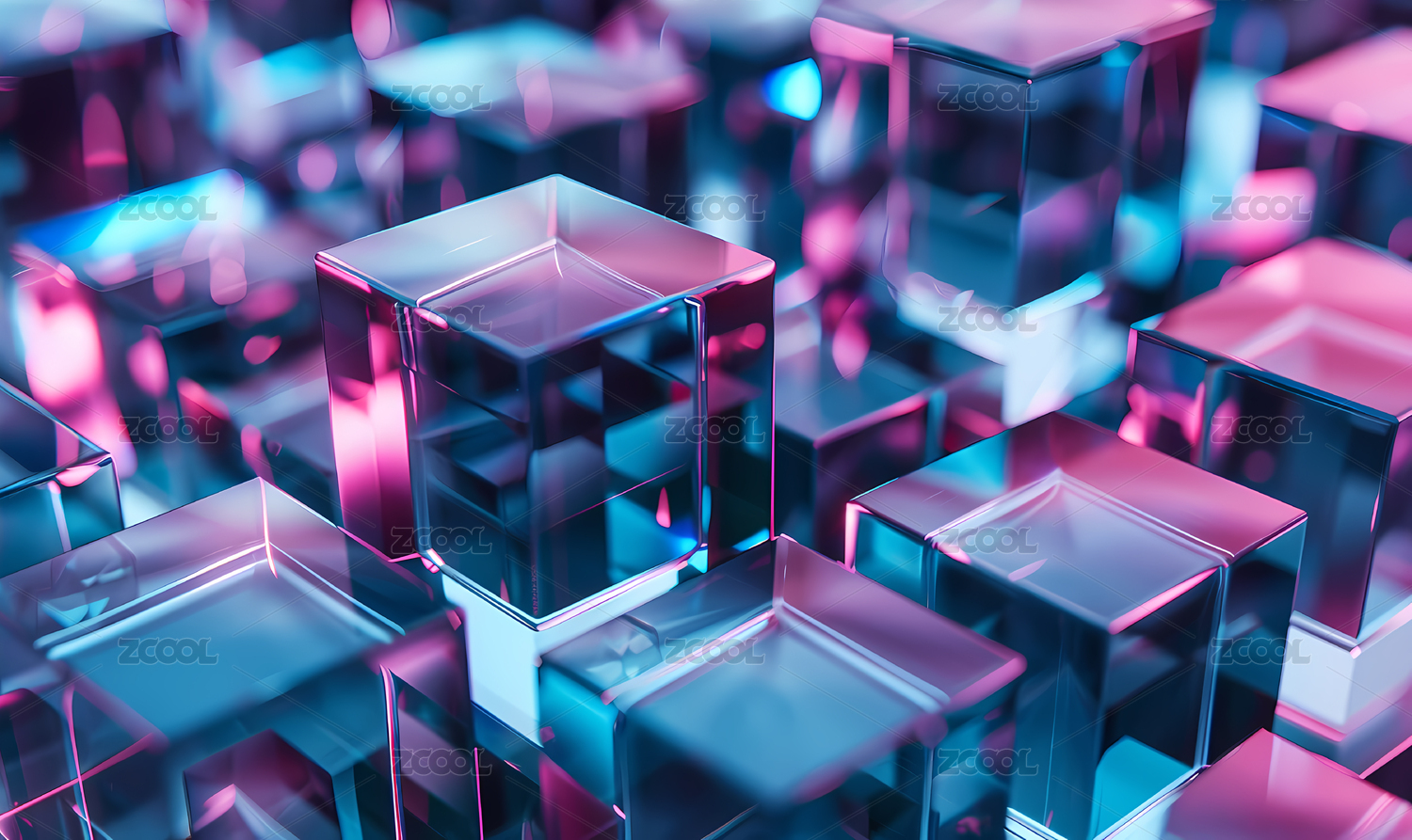 立方体,玻璃,粉色,紫色,蓝色,立体,光滑,抽象