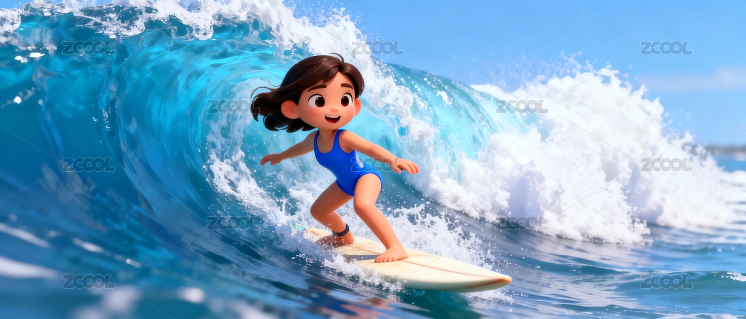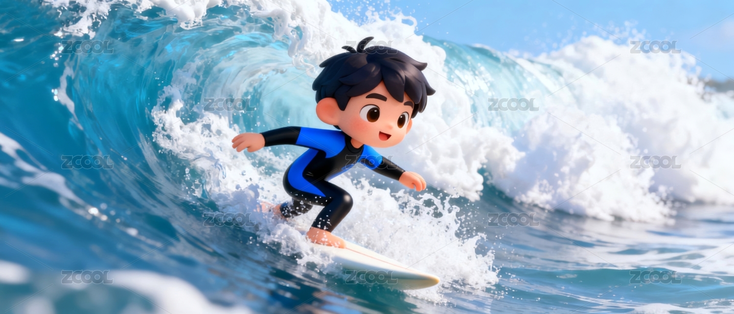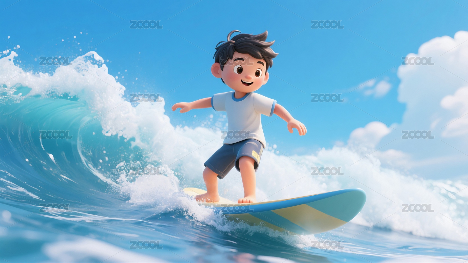 3D,卡通,冲浪,冲浪板,男孩,运动,户外,浪花,健身,刺激