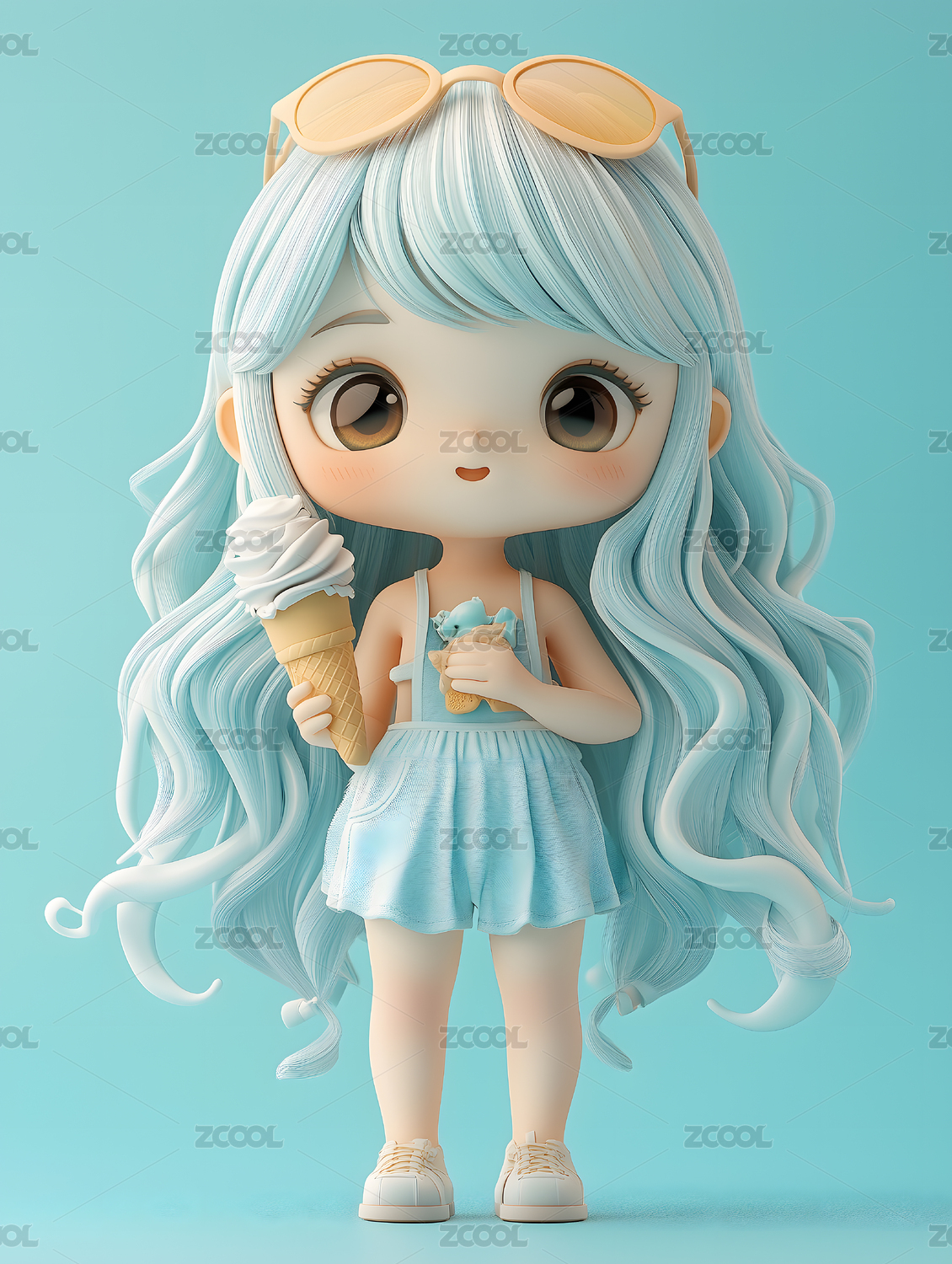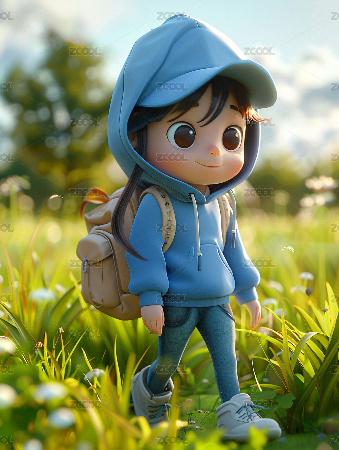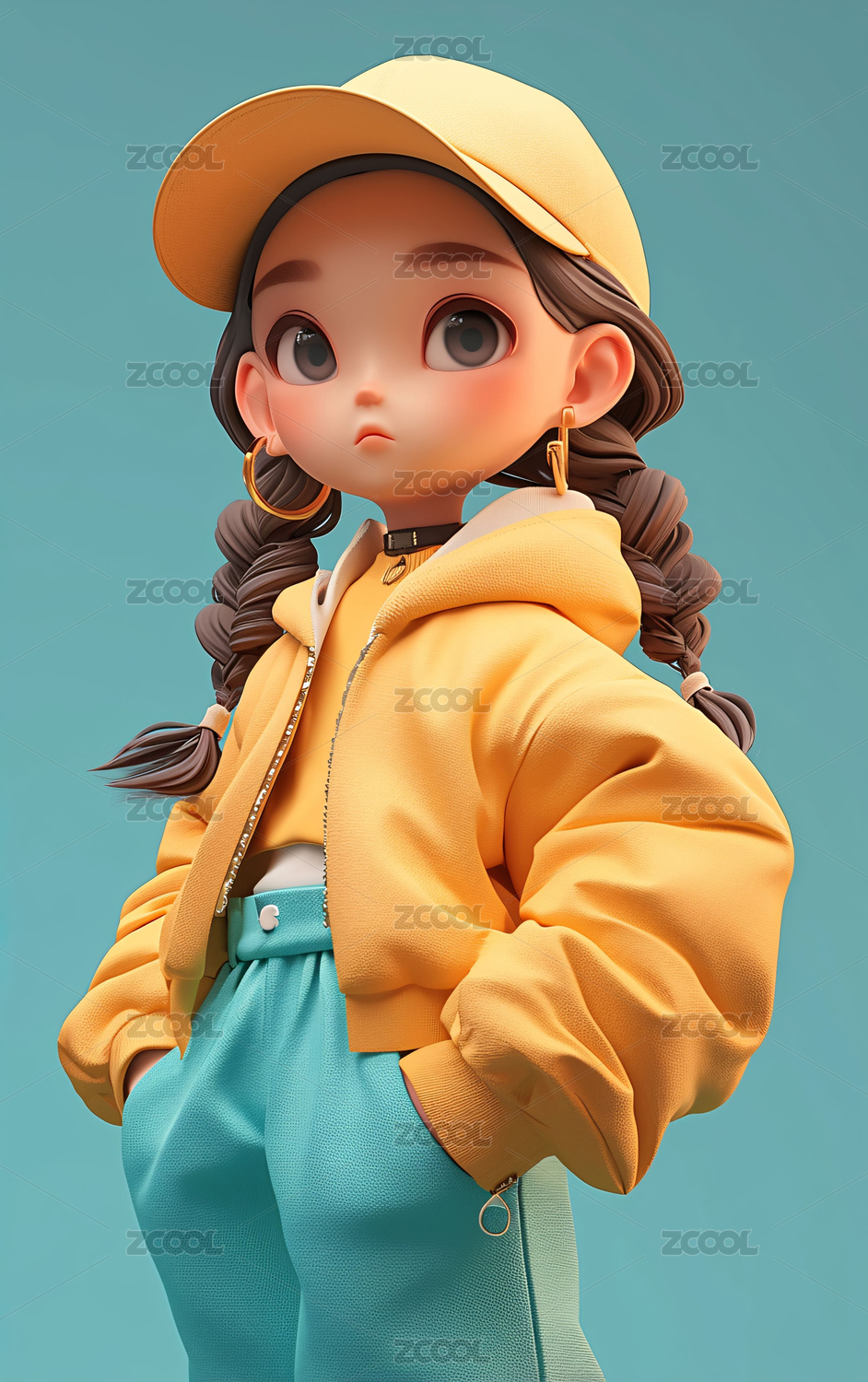 3D渲染可爱卡通女孩三八妇女节人物插画