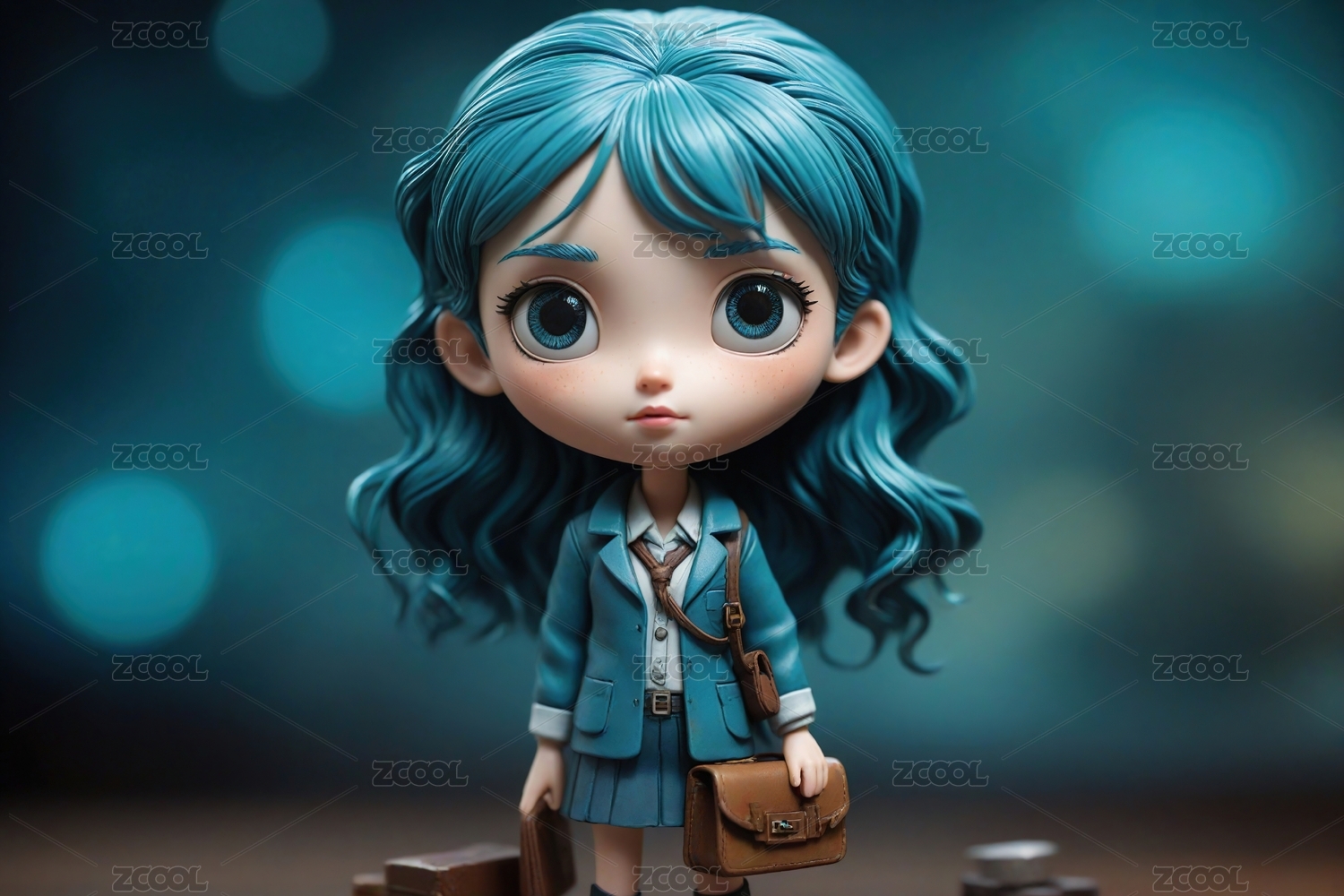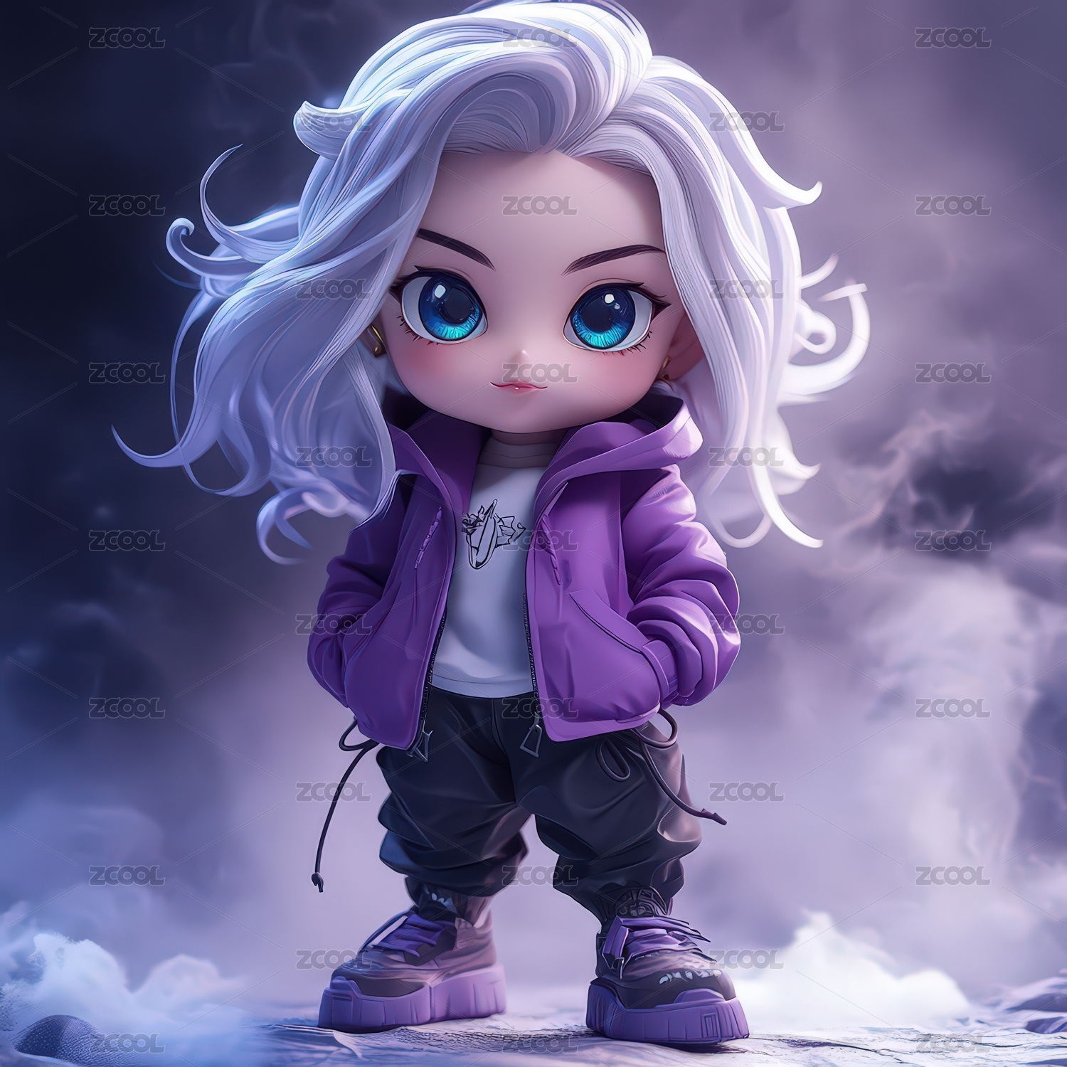 蓝色头发和白色夹克的卡通人物特写高清图片