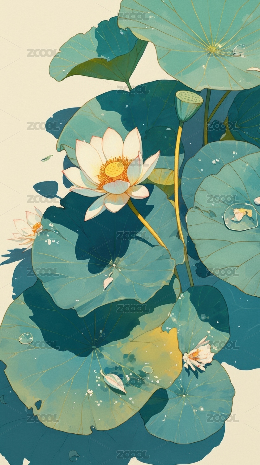 荷塘荷叶锦鲤鲤鱼卡通插画