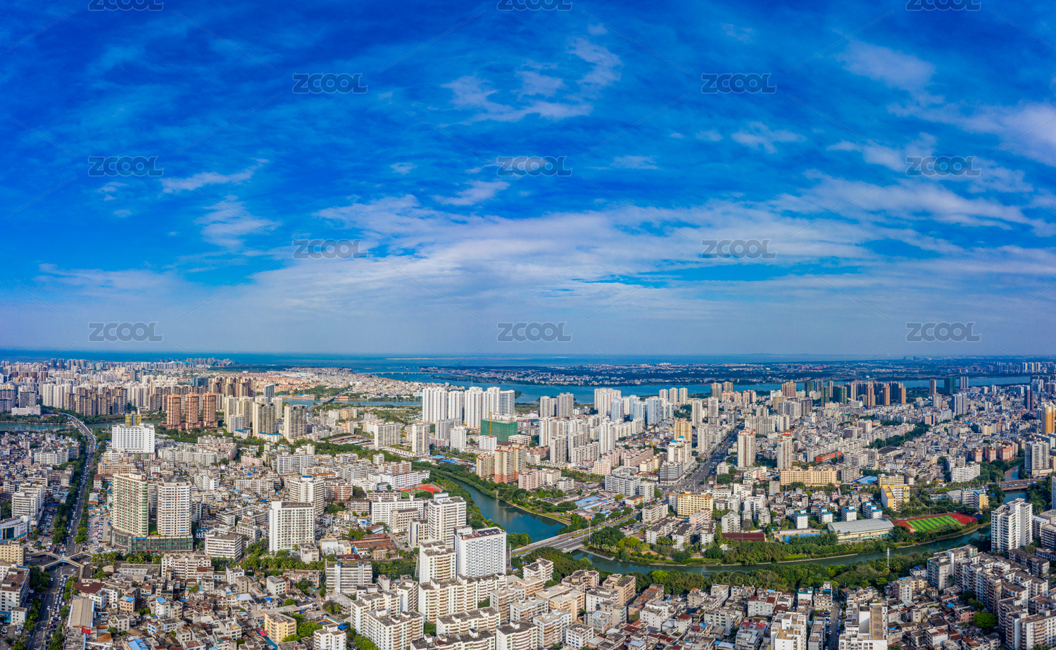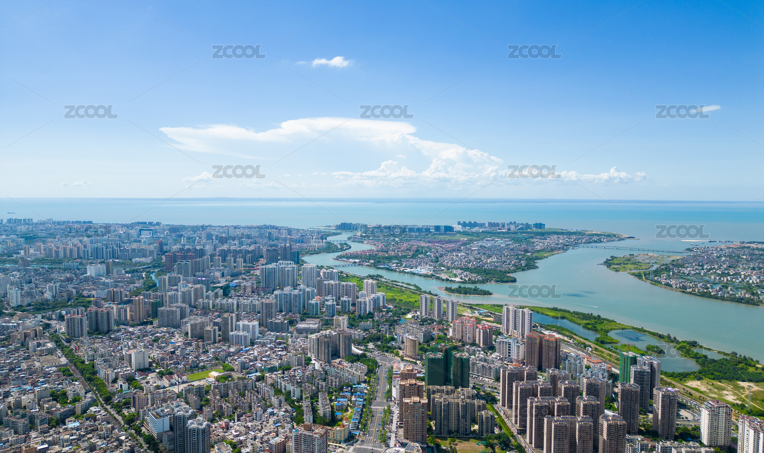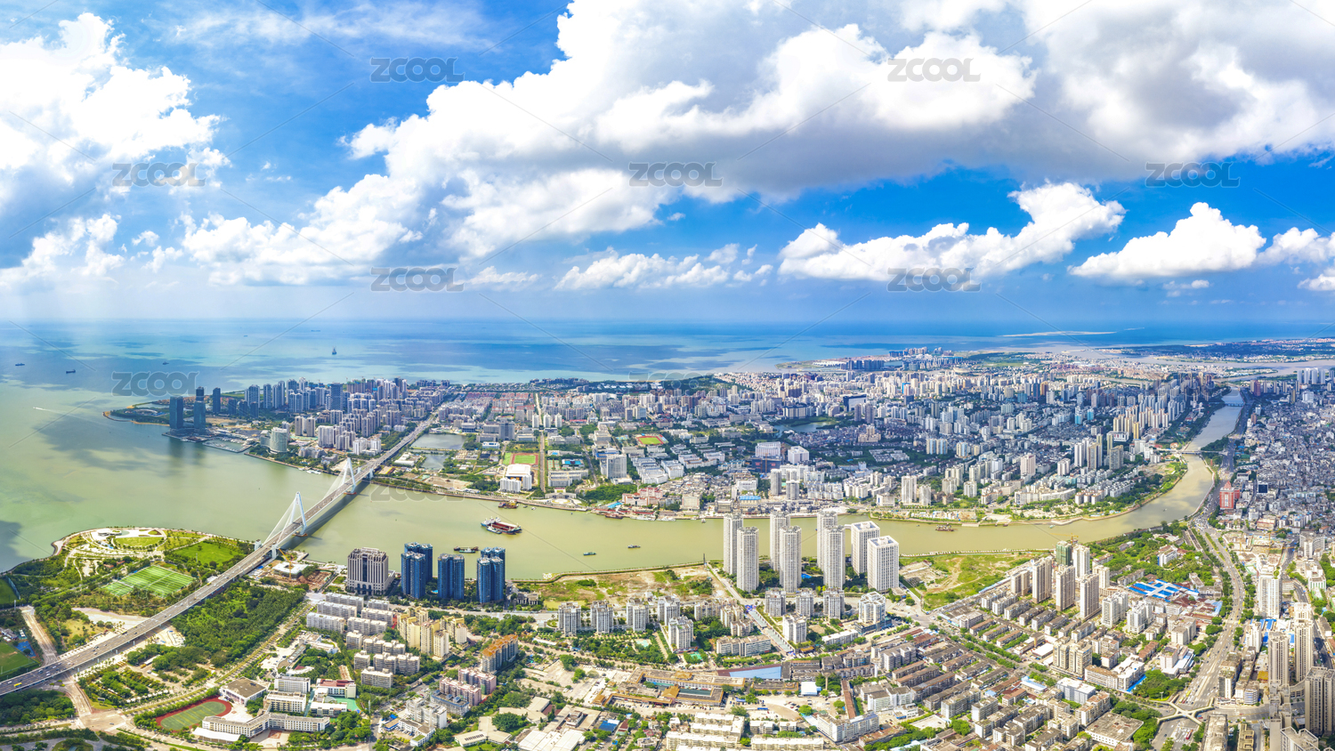 Panoramic Aerial View of Haikou Bay in a Sunny Day, Hainan Island, China