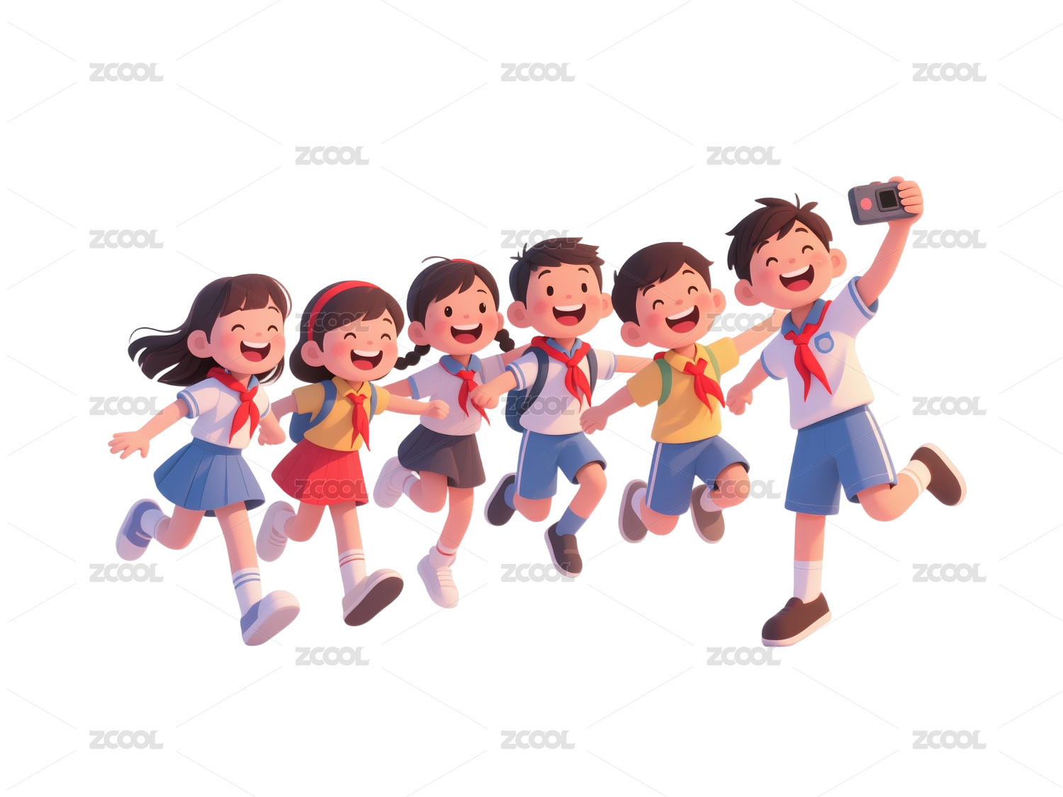 卡通校园男孩拿着书本女孩拿着喇叭学校插画