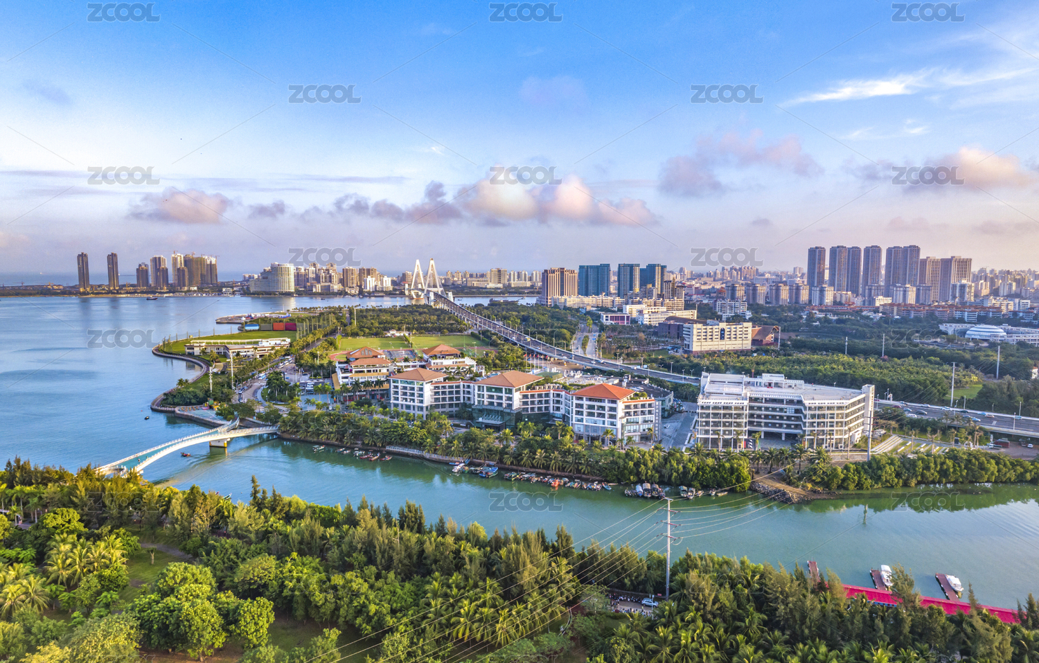 海南海口海滨新城世纪大桥CBD高空航拍