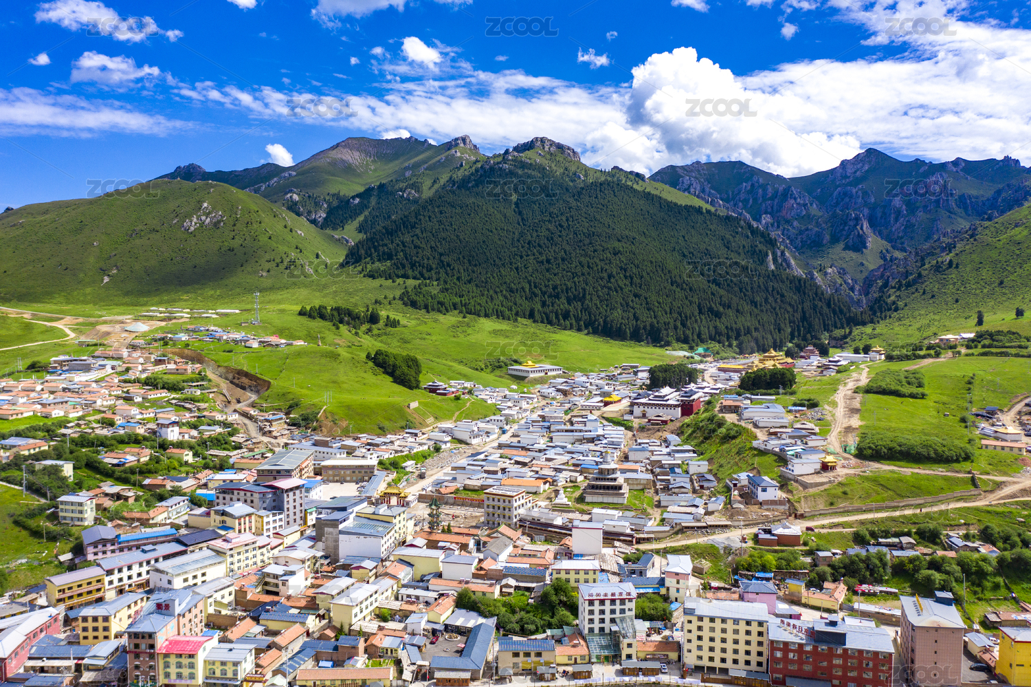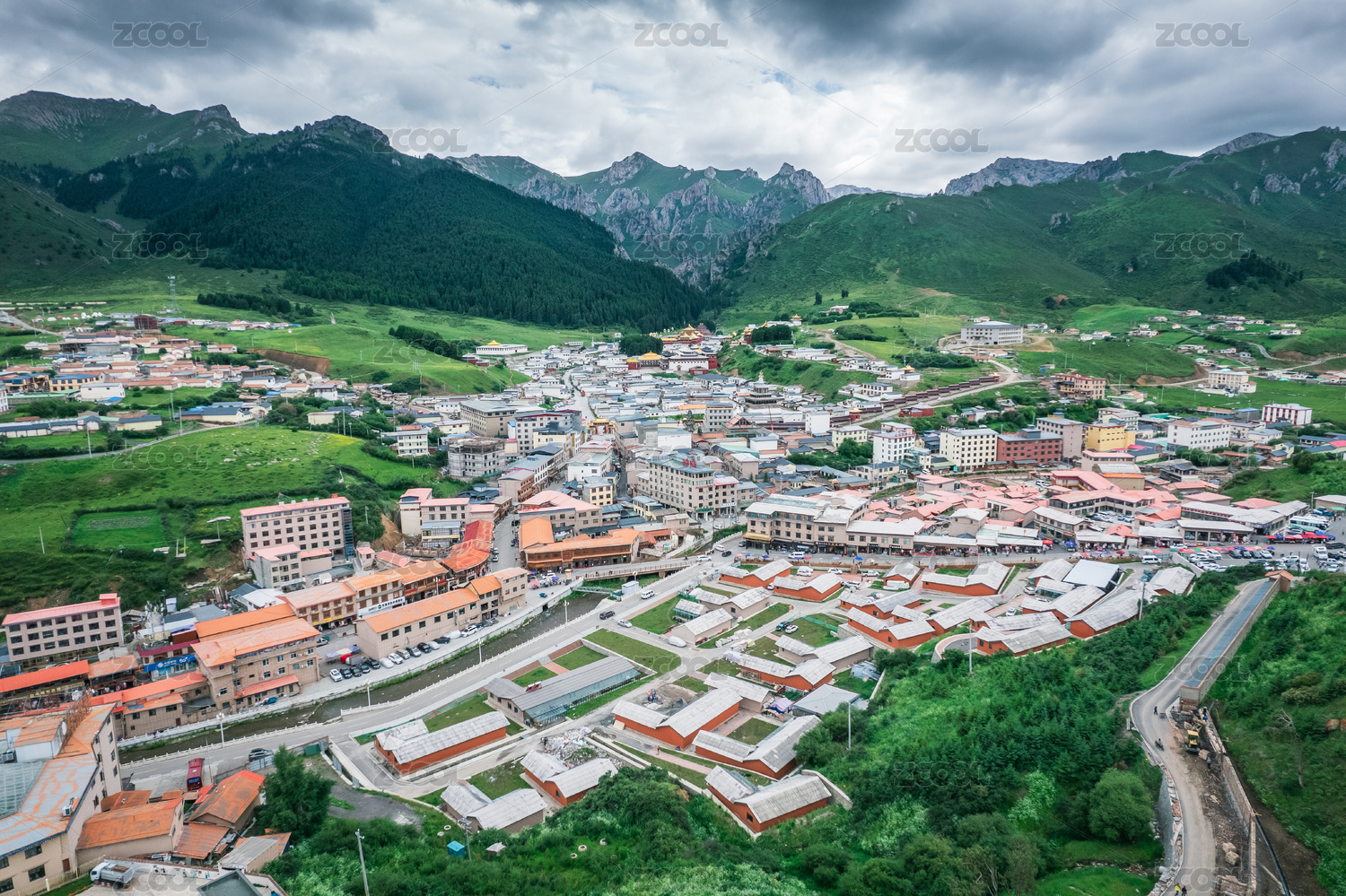 四川阿坝州若尔盖郎木寺镇城市航拍风光