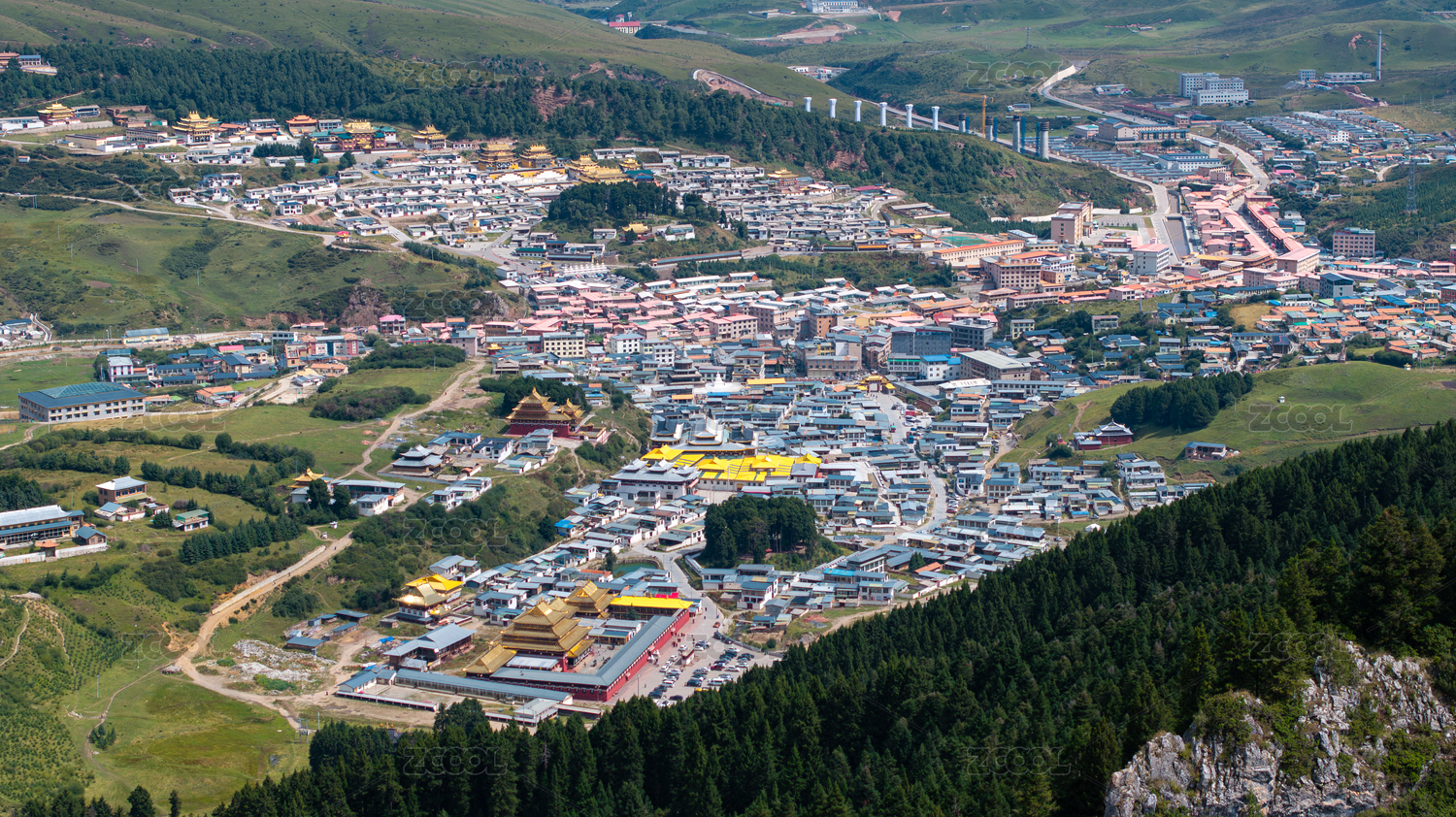 远眺中国四川省阿坝州甘肃省甘南郎木寺建筑