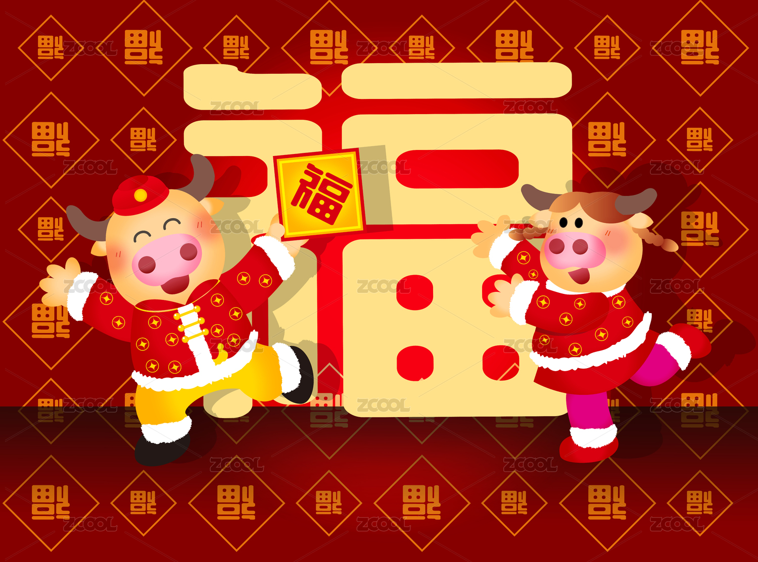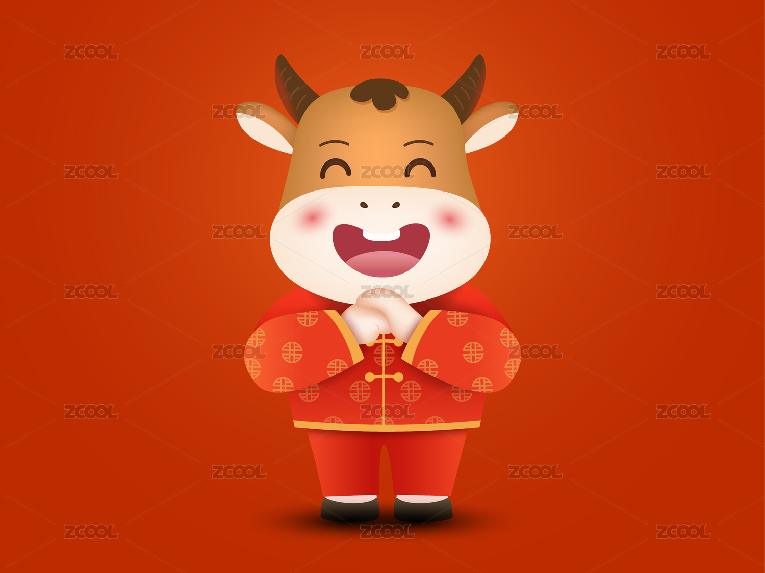 春节,新年,农历年,过年,中国年,牛年,牛,生肖,卡通,公牛