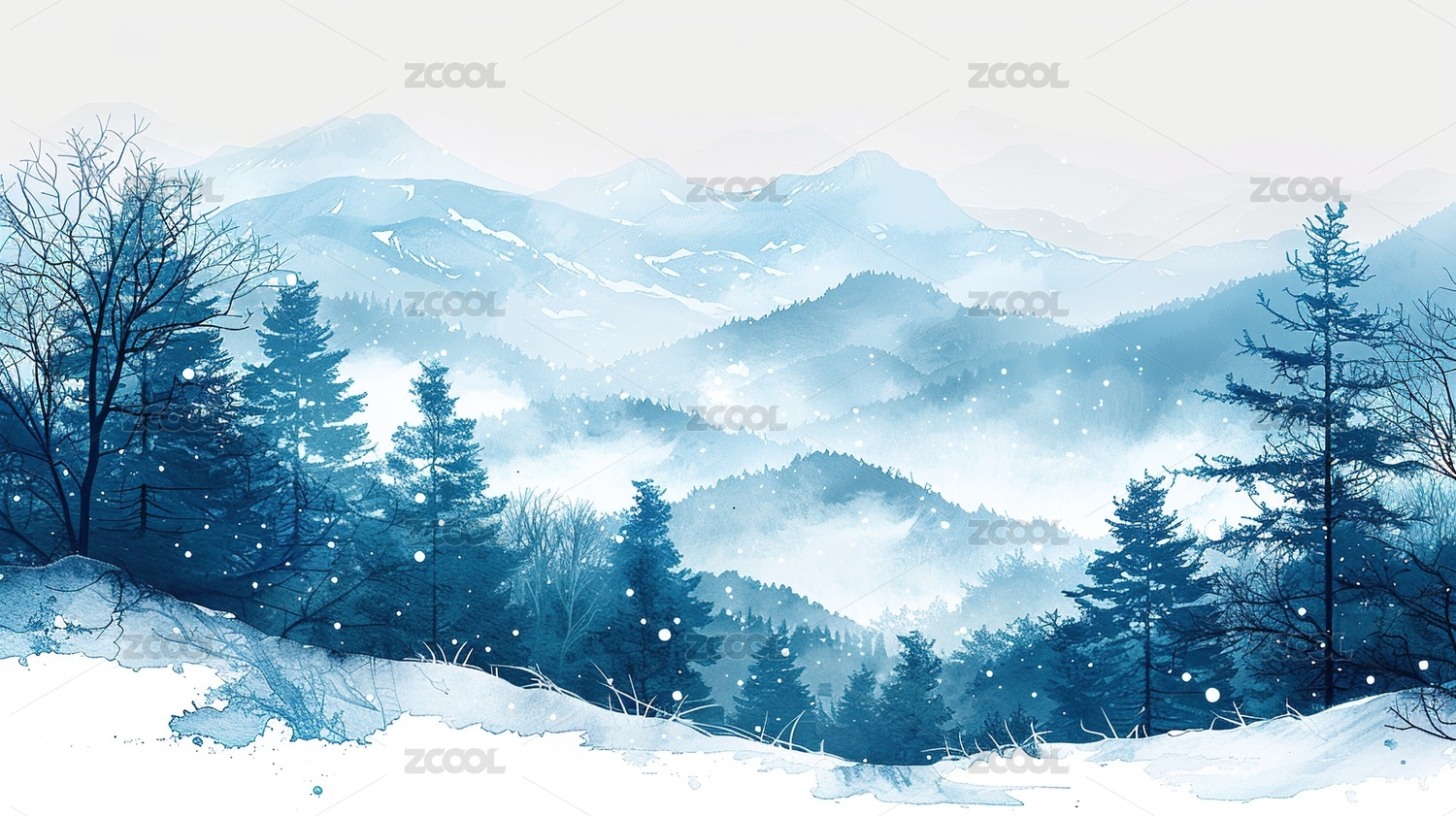 冬天山水插画