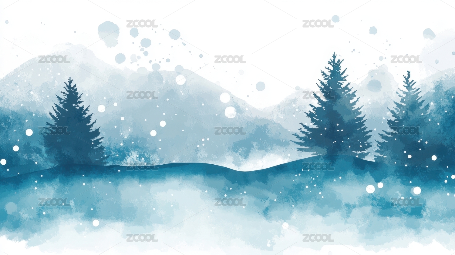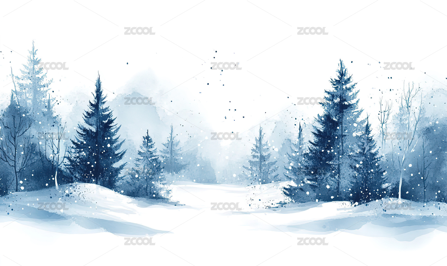 冬日森林雪景水彩画