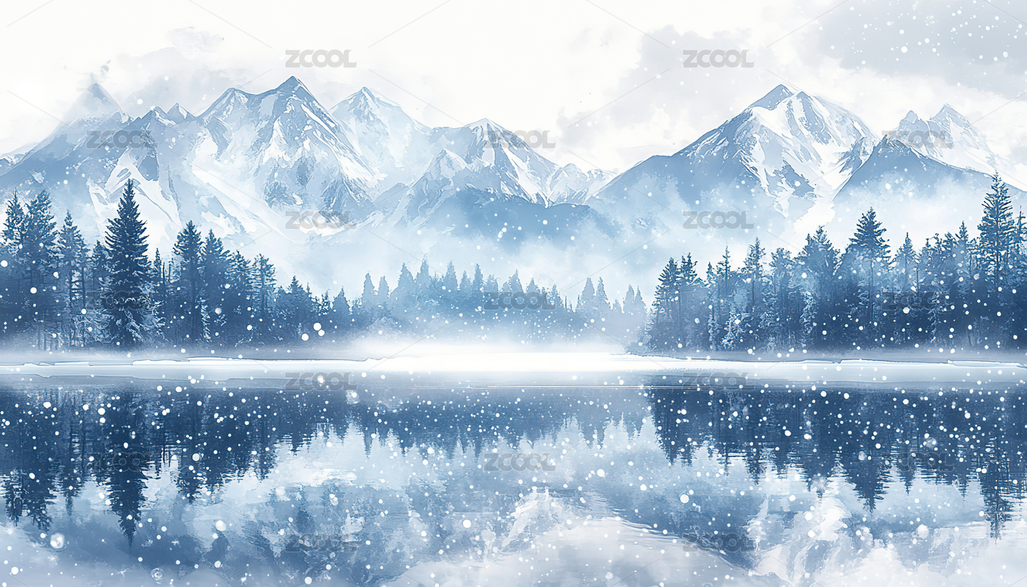 水彩风格雪山自然风光