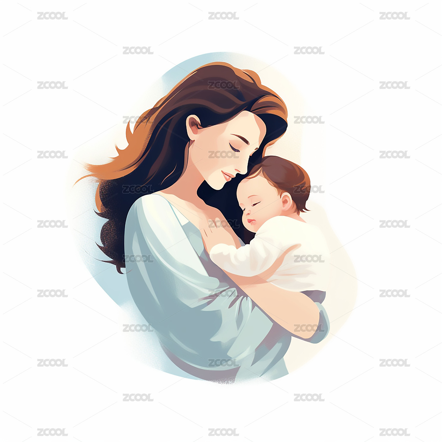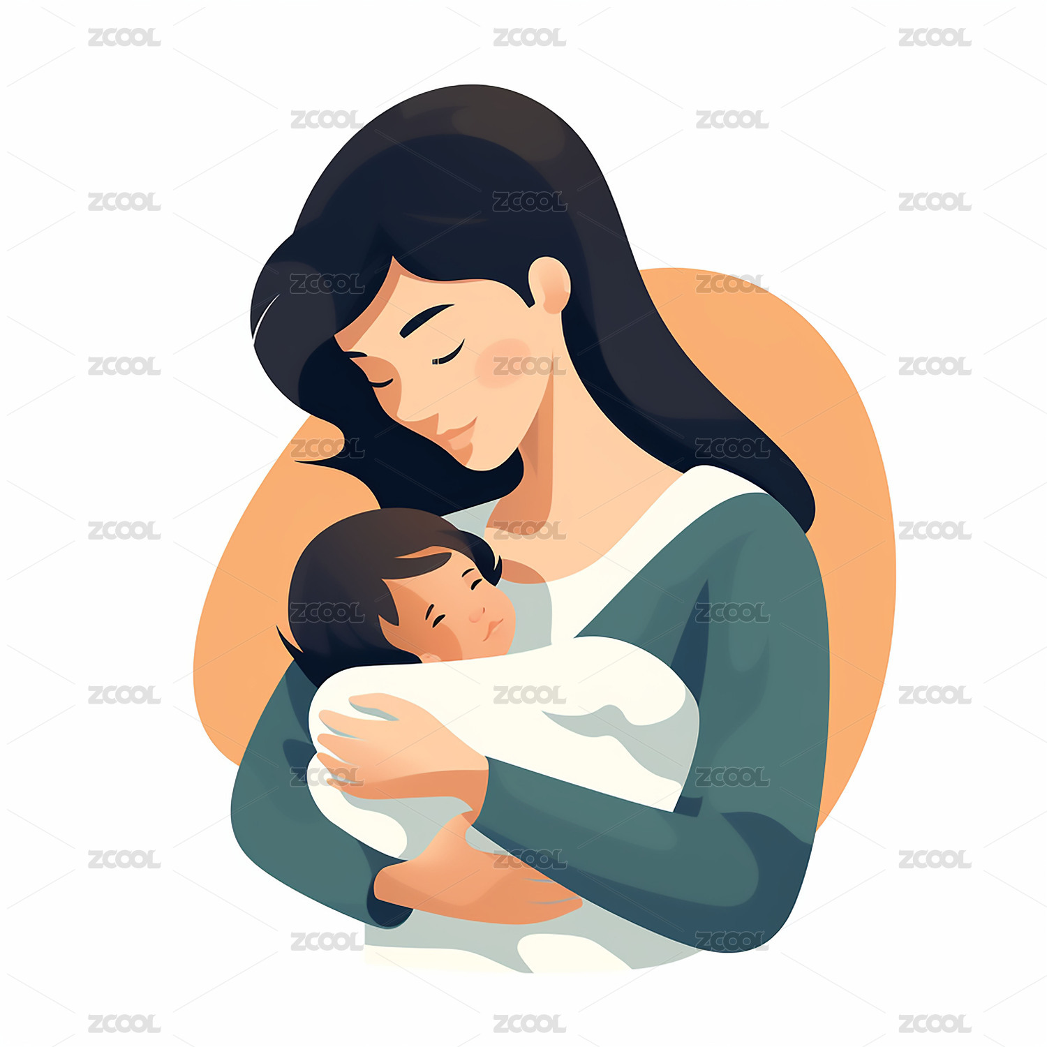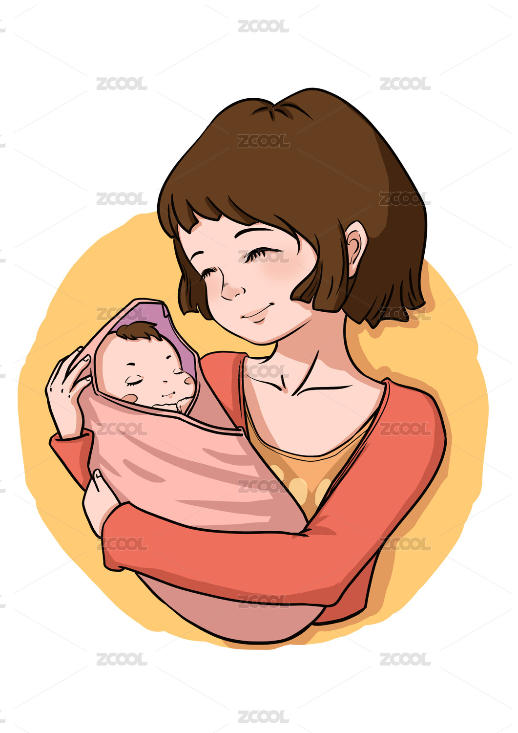 母婴,妈妈,亲子,婴儿,儿童,温馨,陪伴,插画,爱,可爱