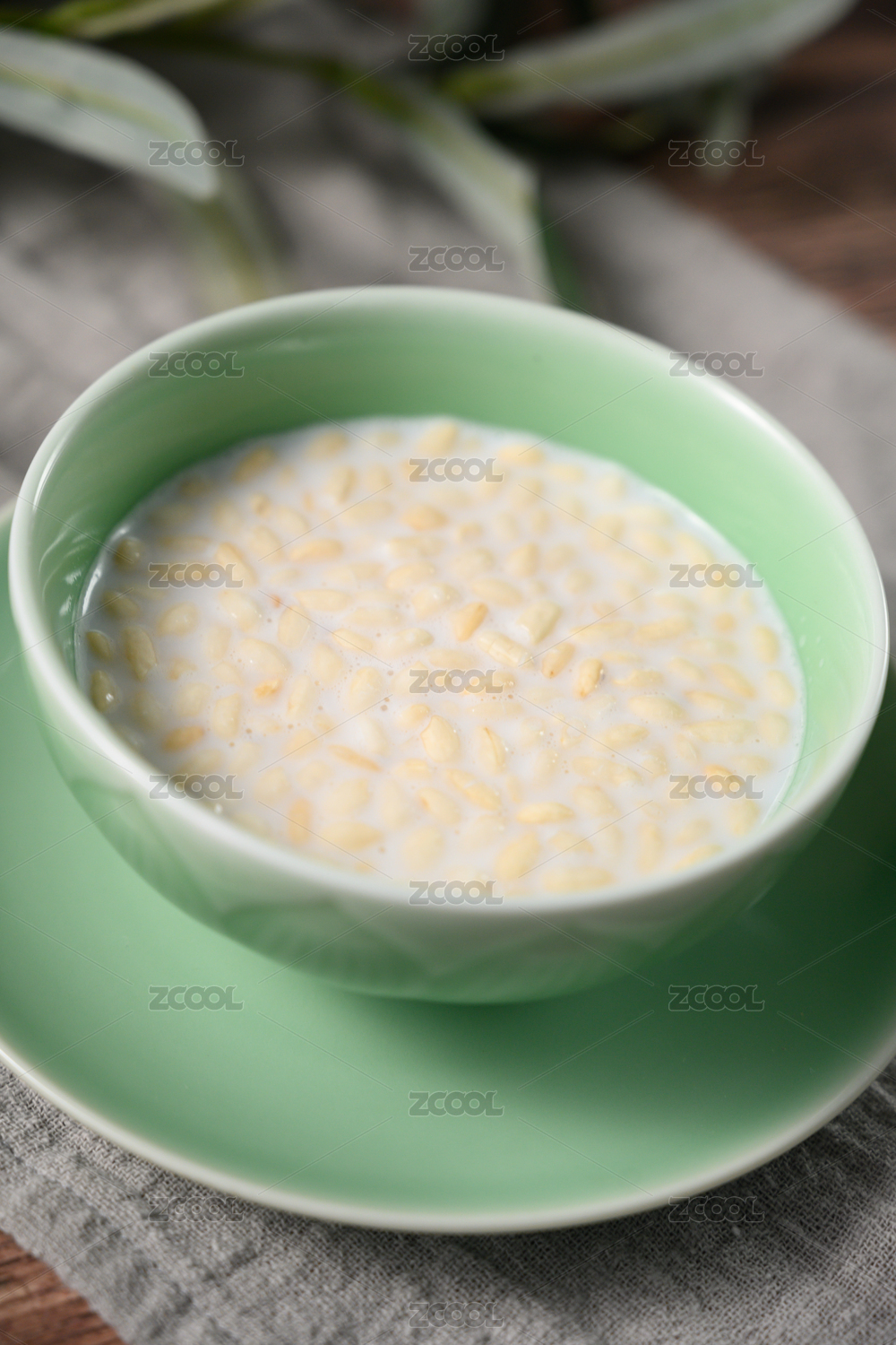 桌面上的盘子里的牛奶鹰嘴豆片