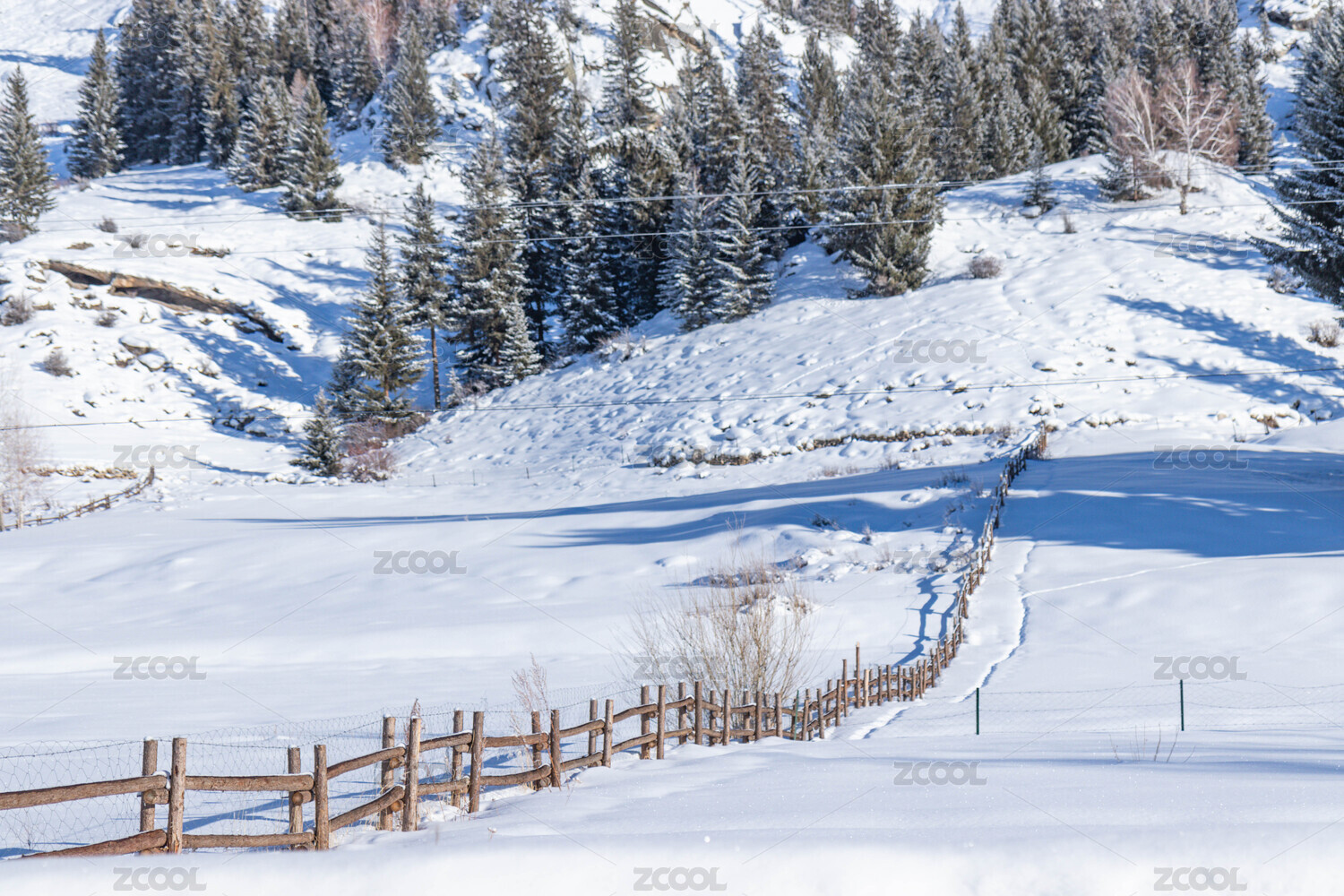 中国新疆伊犁的库尔德宁景区的冬季自然风光