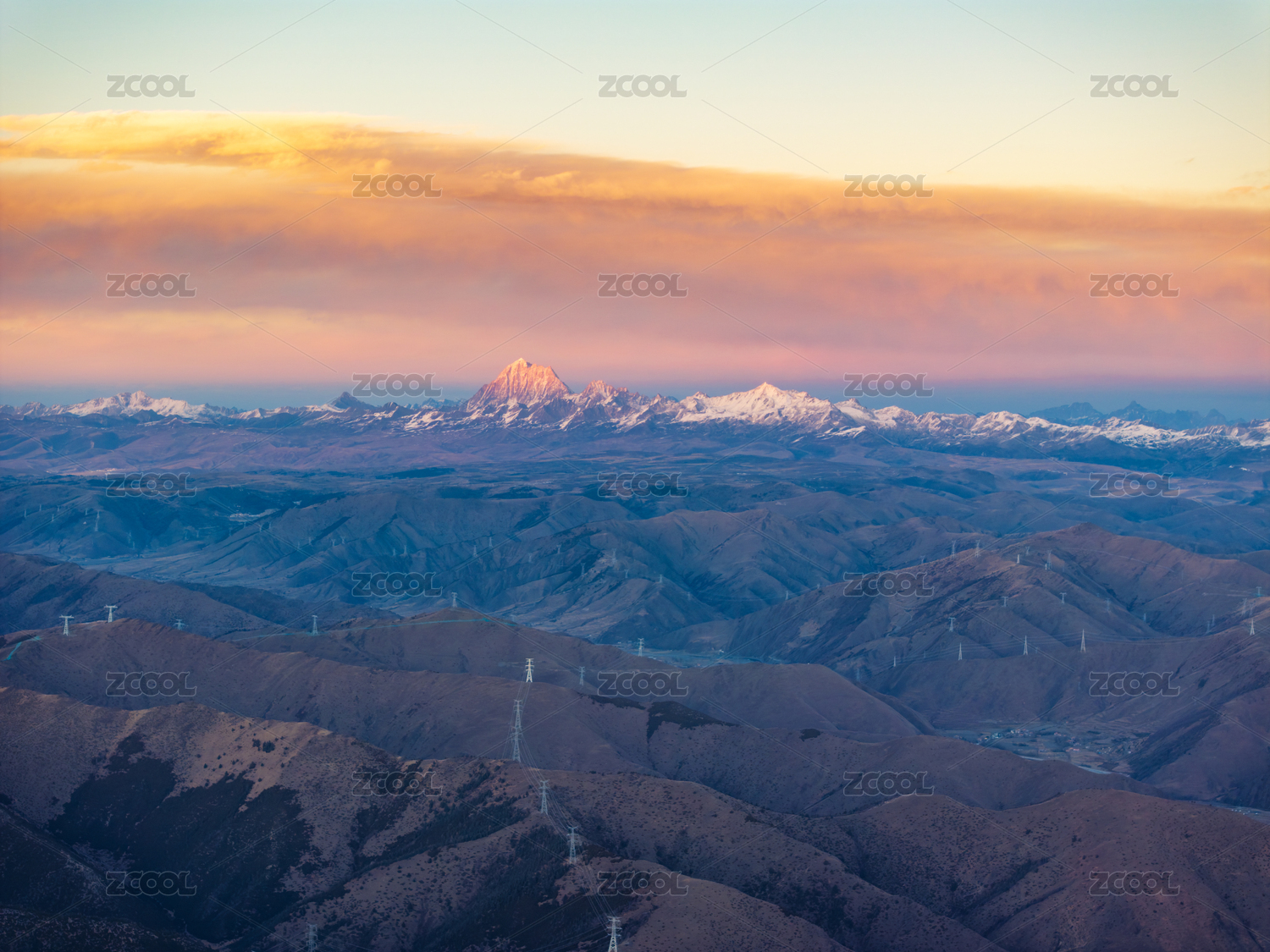 中国远眺雅拉雪山和雅姆雪山的黄昏时刻