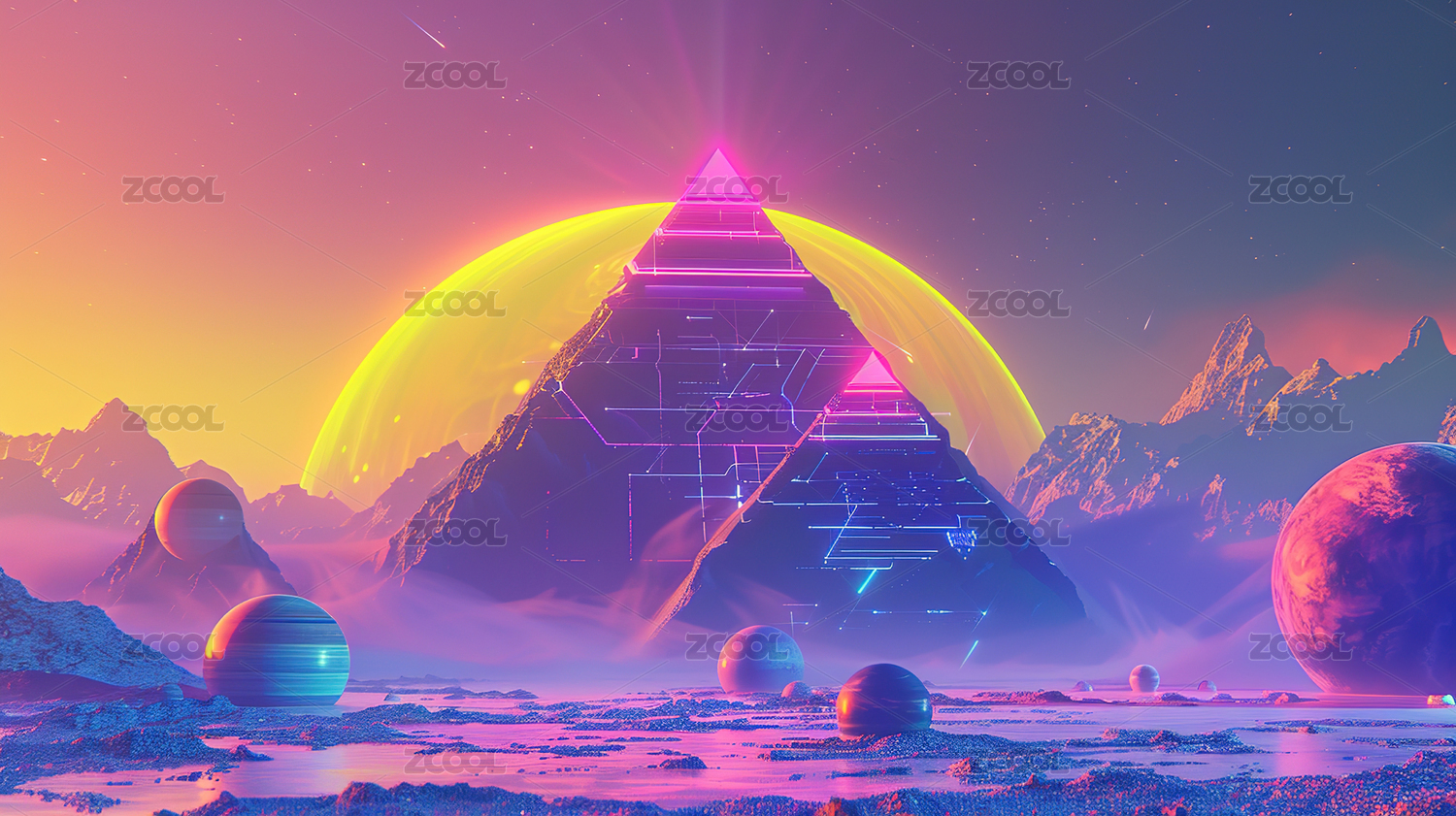 科学技术,高山,风景,AI数字艺术,月亮,背景,商务,壁纸,未来主义,几何学