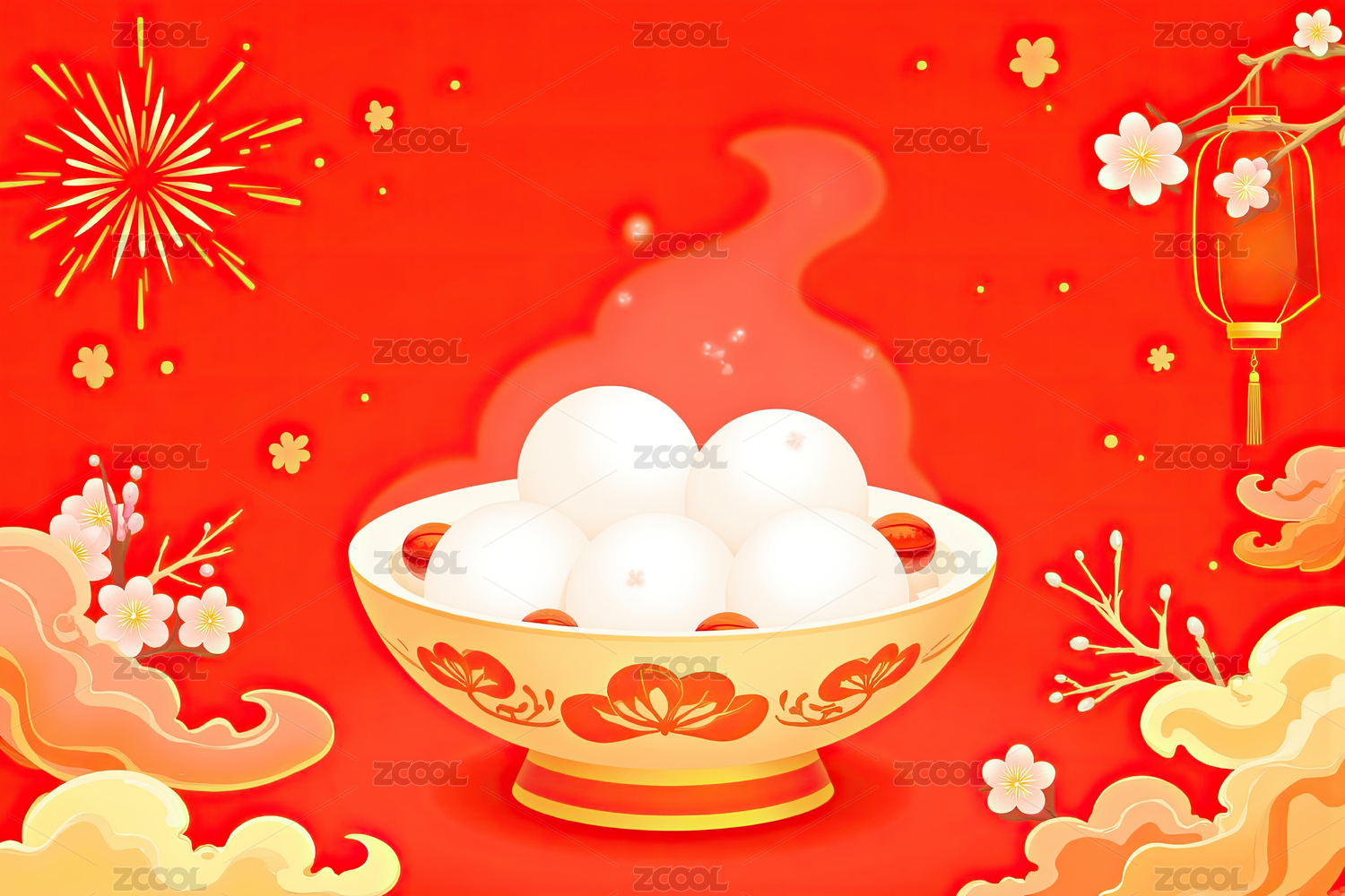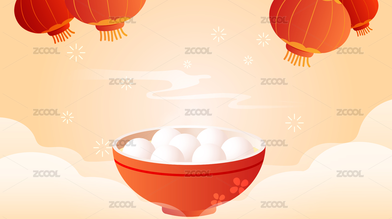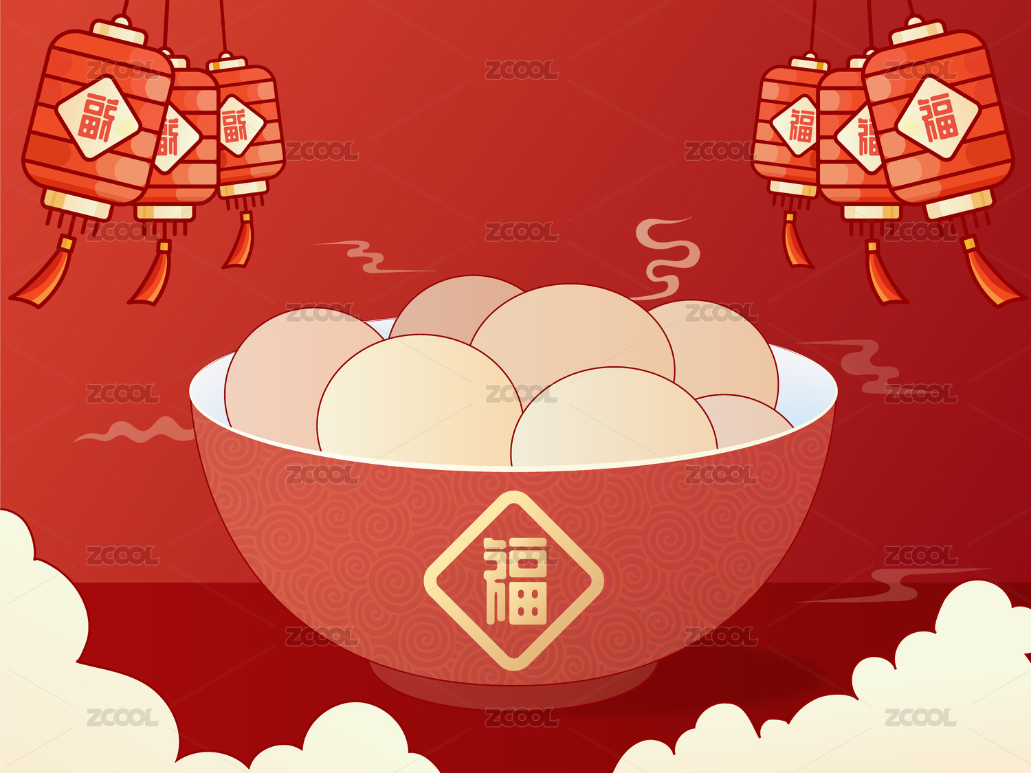 元宵佳节一碗汤圆和灯笼猜灯谜等国潮风插画