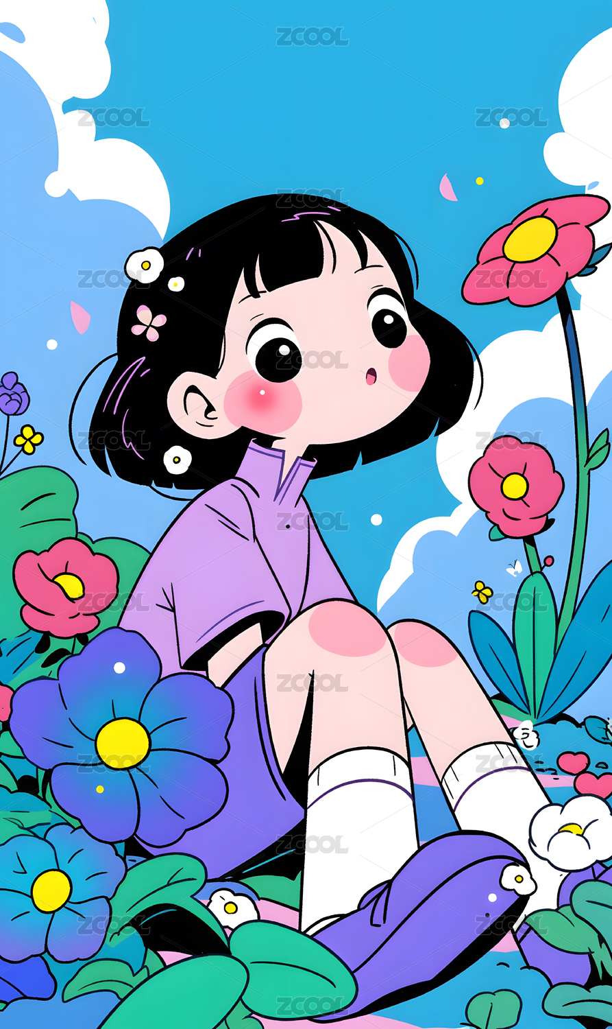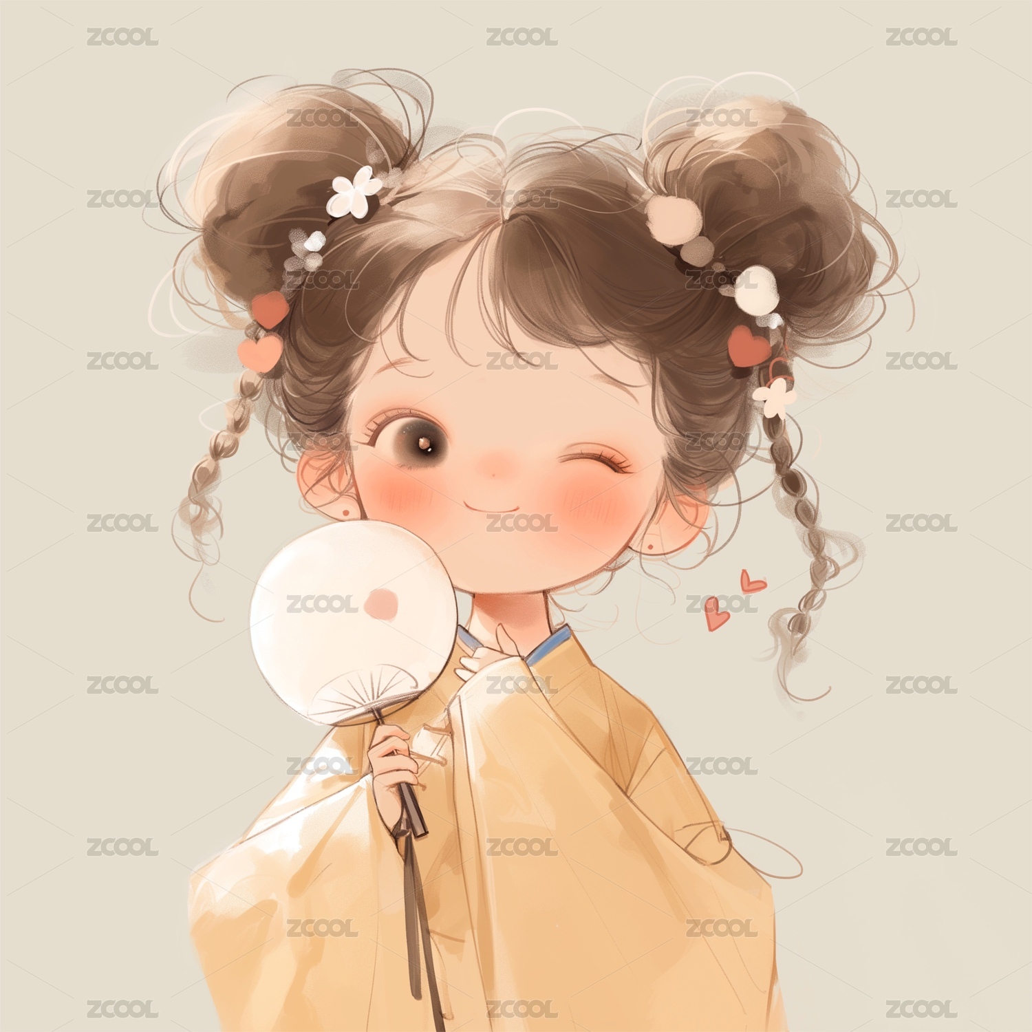 手绘,卡通,可爱,唐装,女孩,插画,漂亮,汉服,亚洲服饰,红衣裳