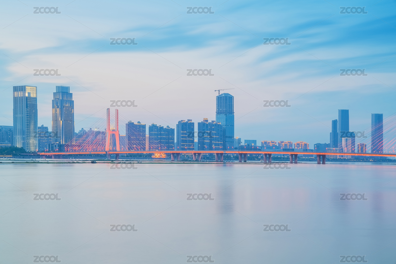 南昌市赣江上的八一大桥和沿岸的现代建筑