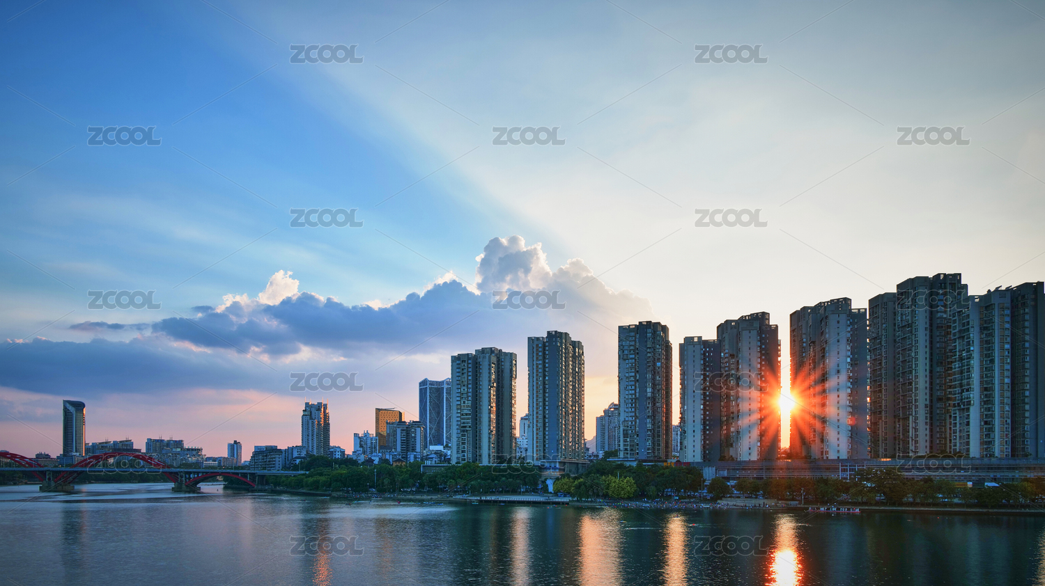 珠海前山河白石桥落日