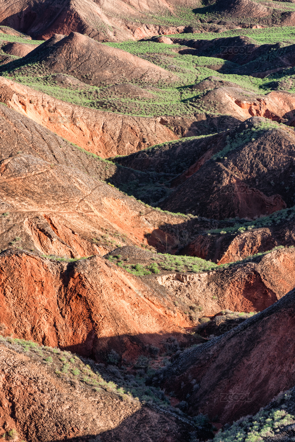 中国陕西省延安市靖边波浪谷丹霞地貌红色山脊