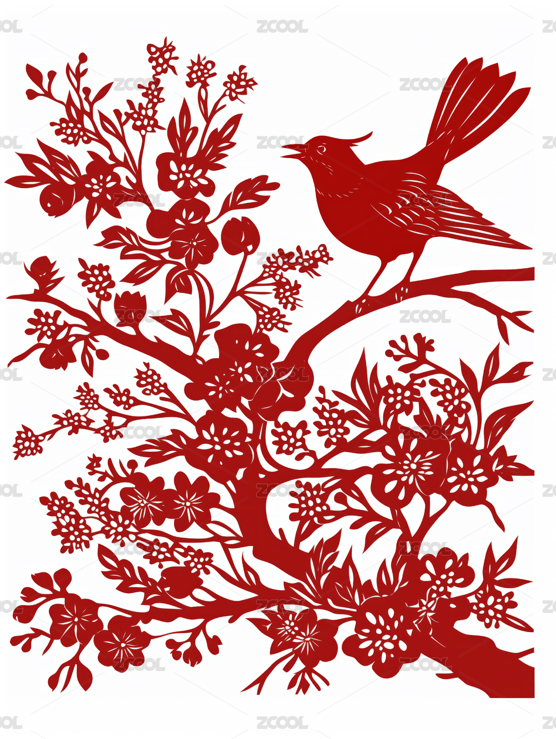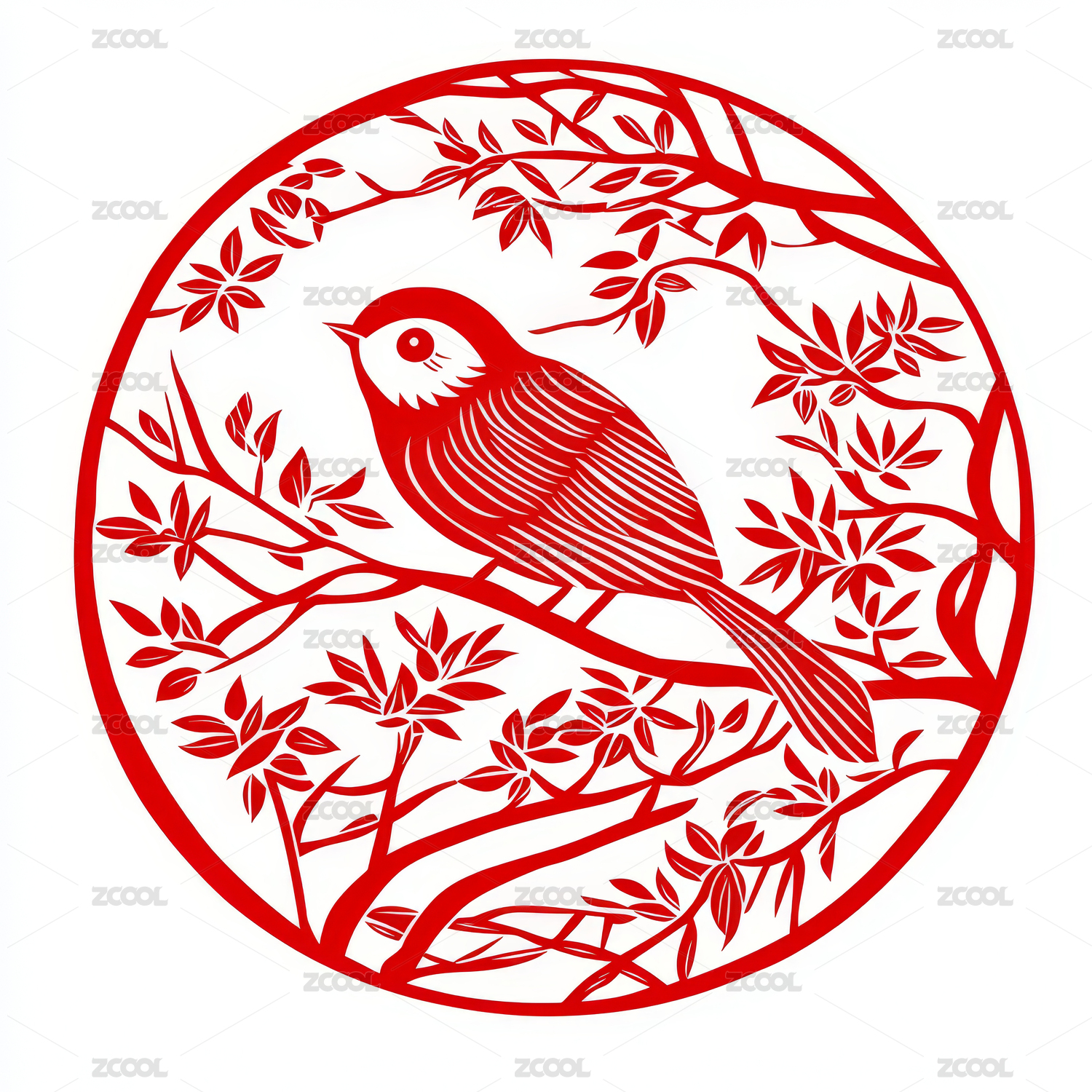 鸟花剪纸窗花圆形中国风春节印刷打印