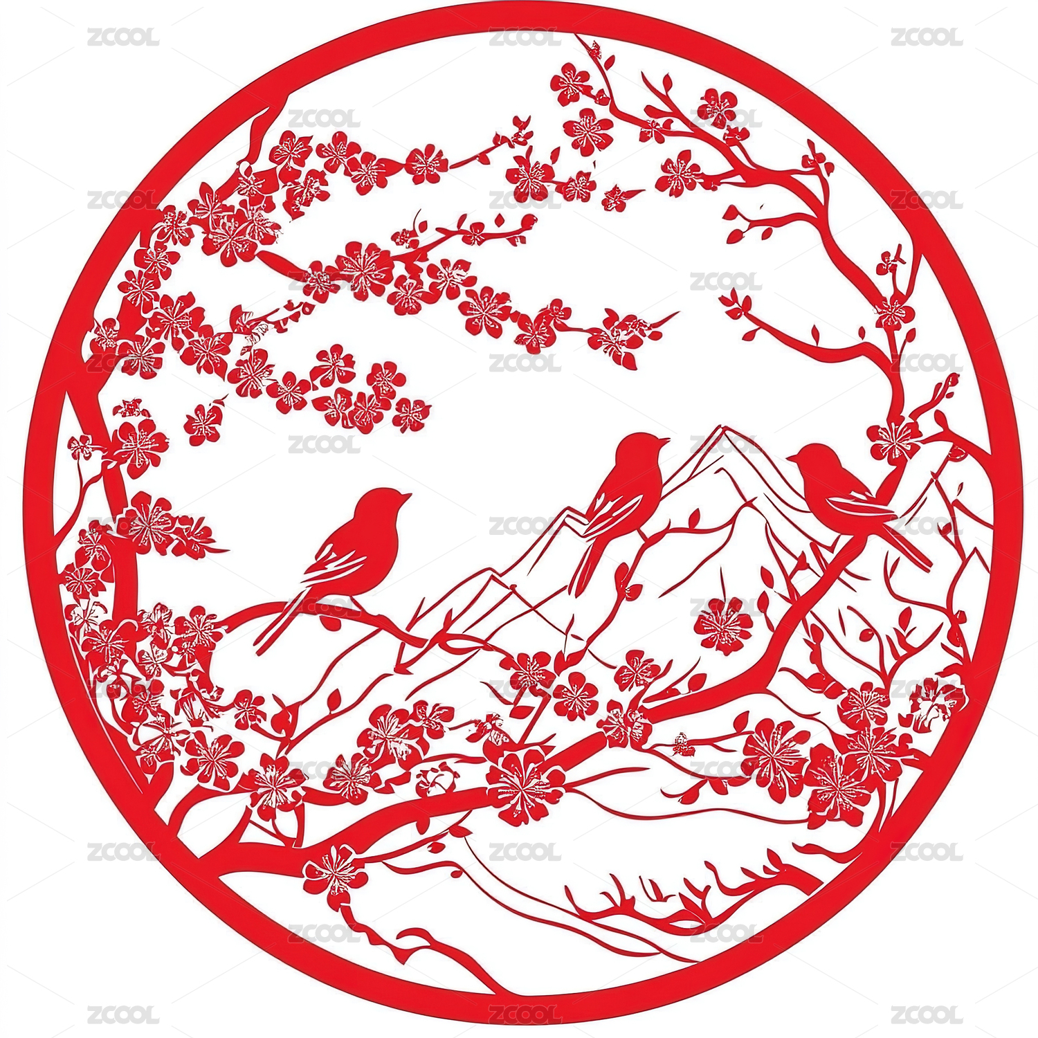 梅花剪纸窗花年画圆形中国风春节印刷打印