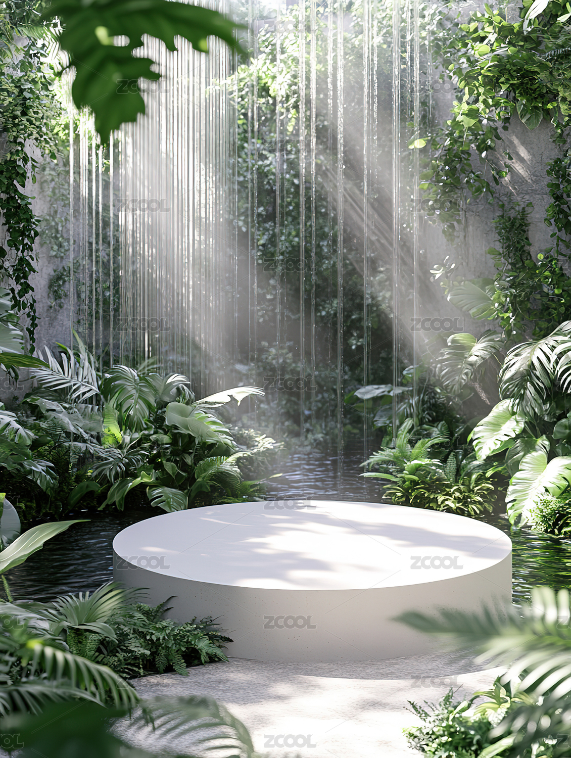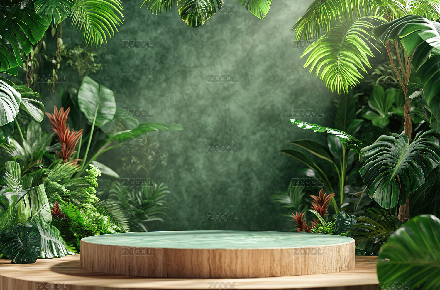 绿色,小清新,电商,展台,光影,自然,植物,绿叶,c4d,写实