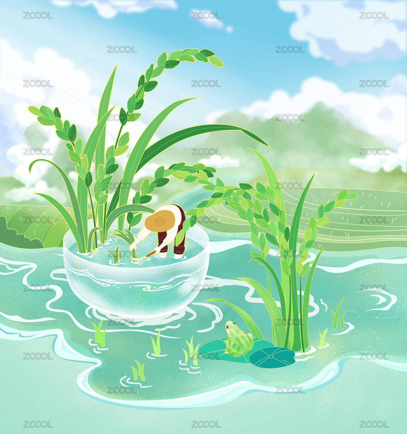 盖碗茶杯中装饰梯田茶叶农忙主题插画