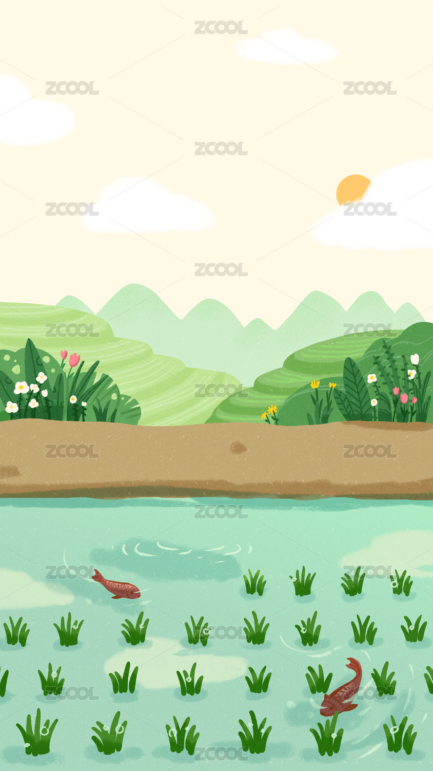 小满,节气,麦子,麦苗,樱桃,苦菜,线描,噪点,七星瓢虫,小麦
