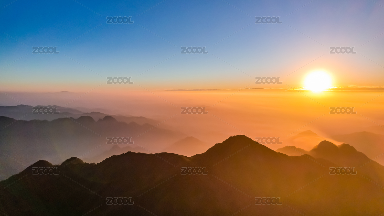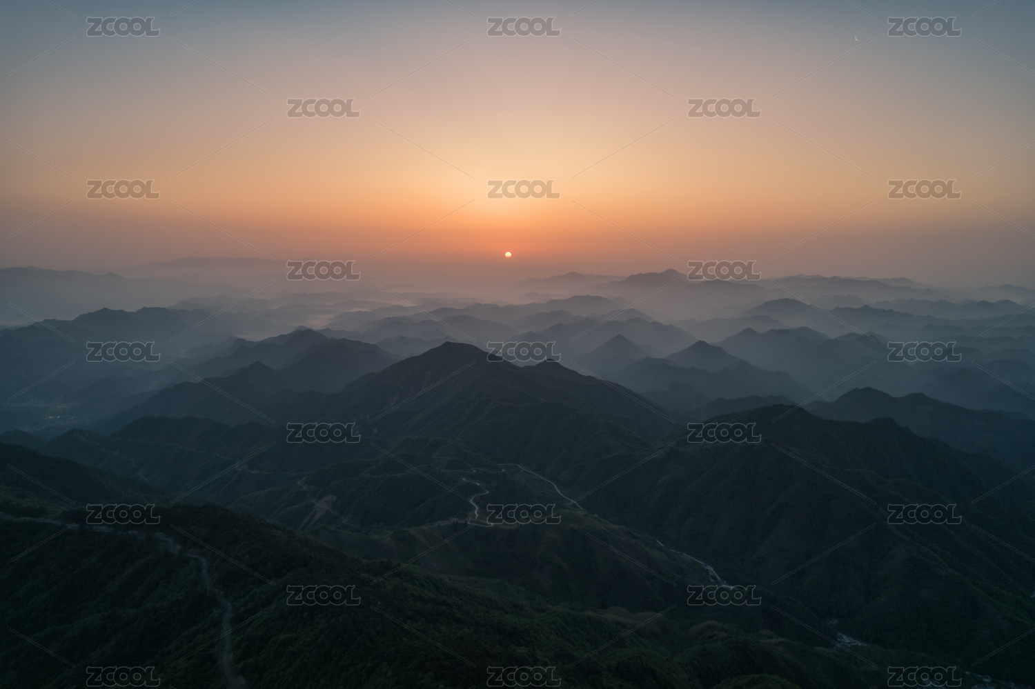 杭州临安牵牛岗昱岭群山日出