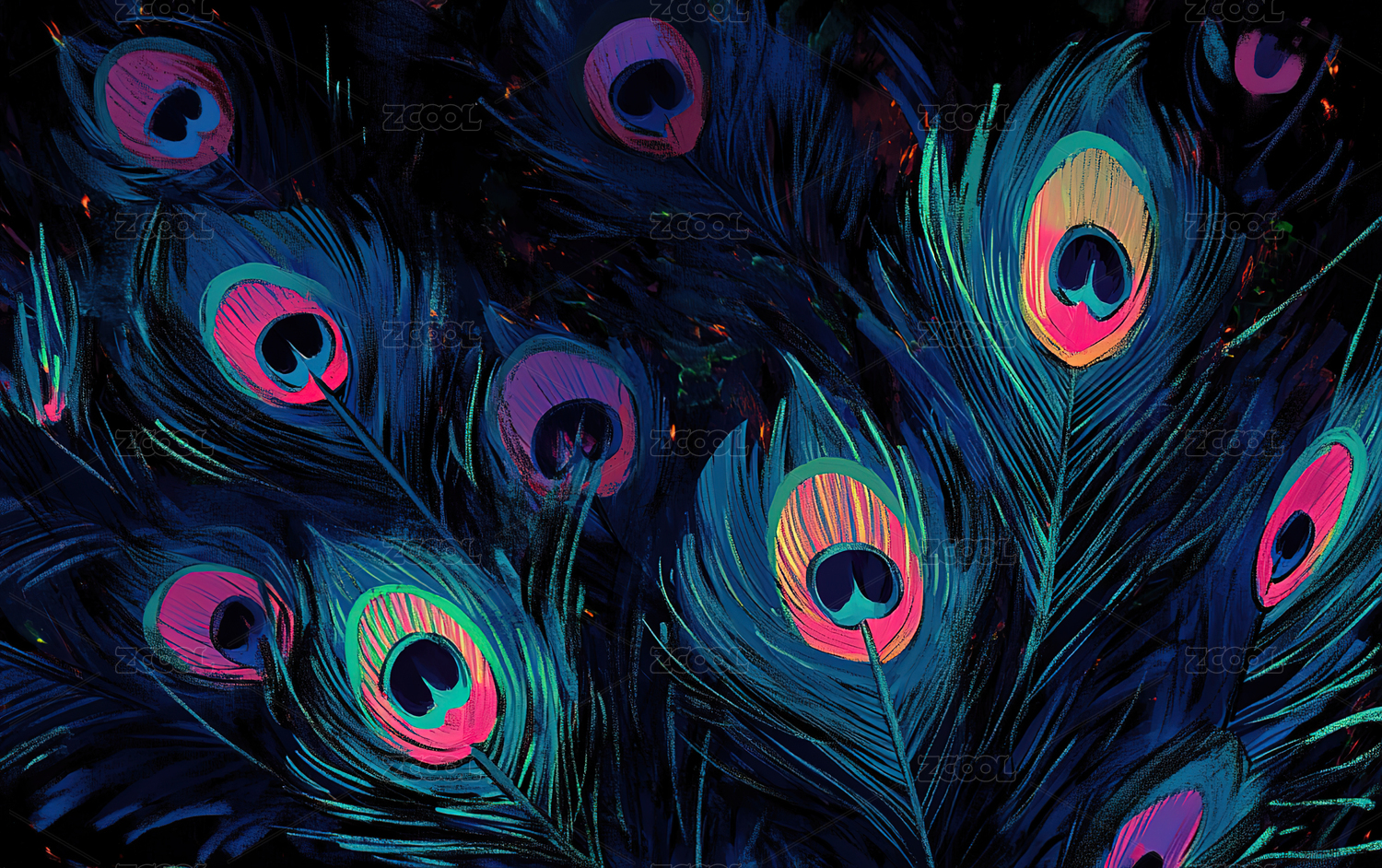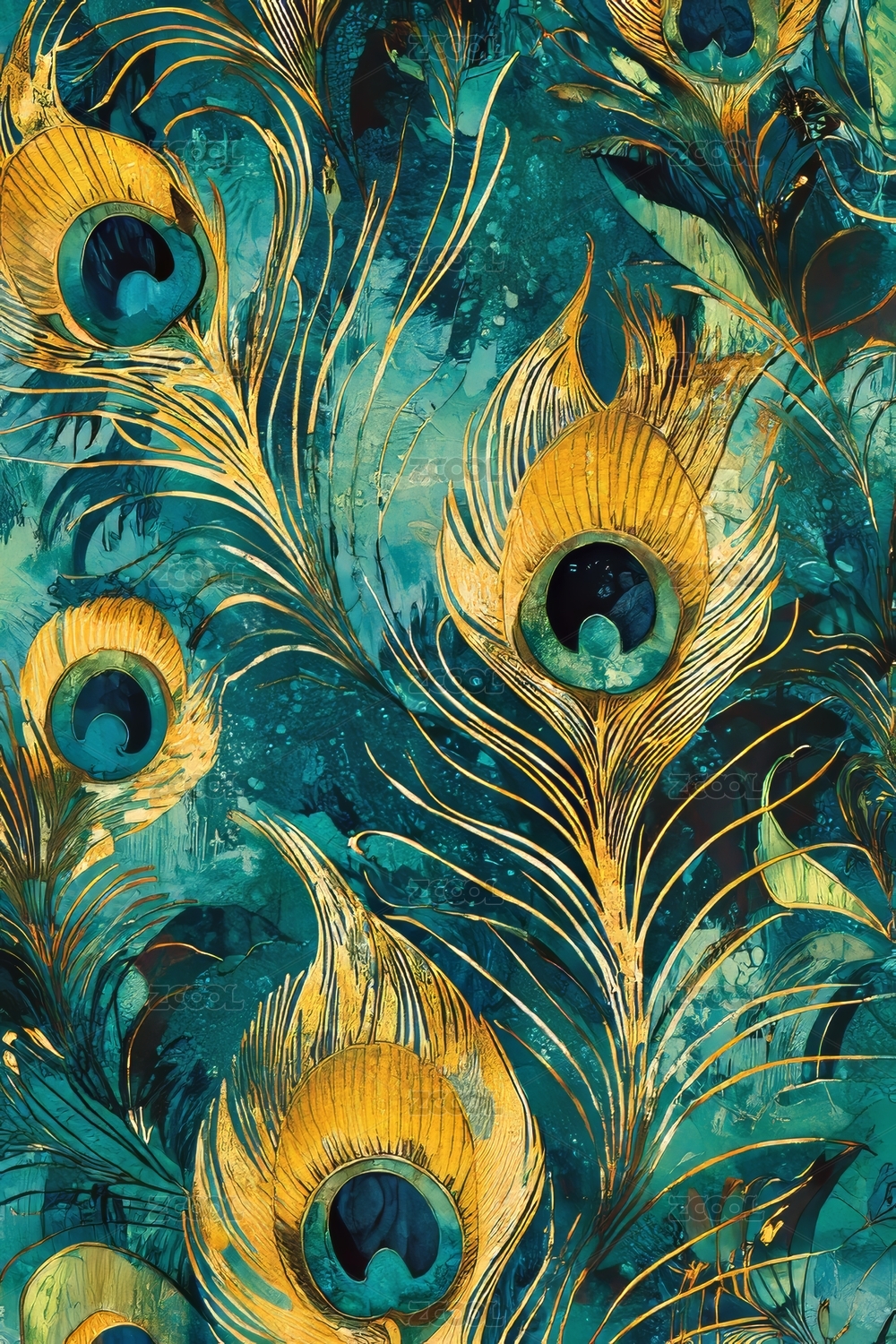 孔雀羽毛无缝平铺四方连续纹样图案背景