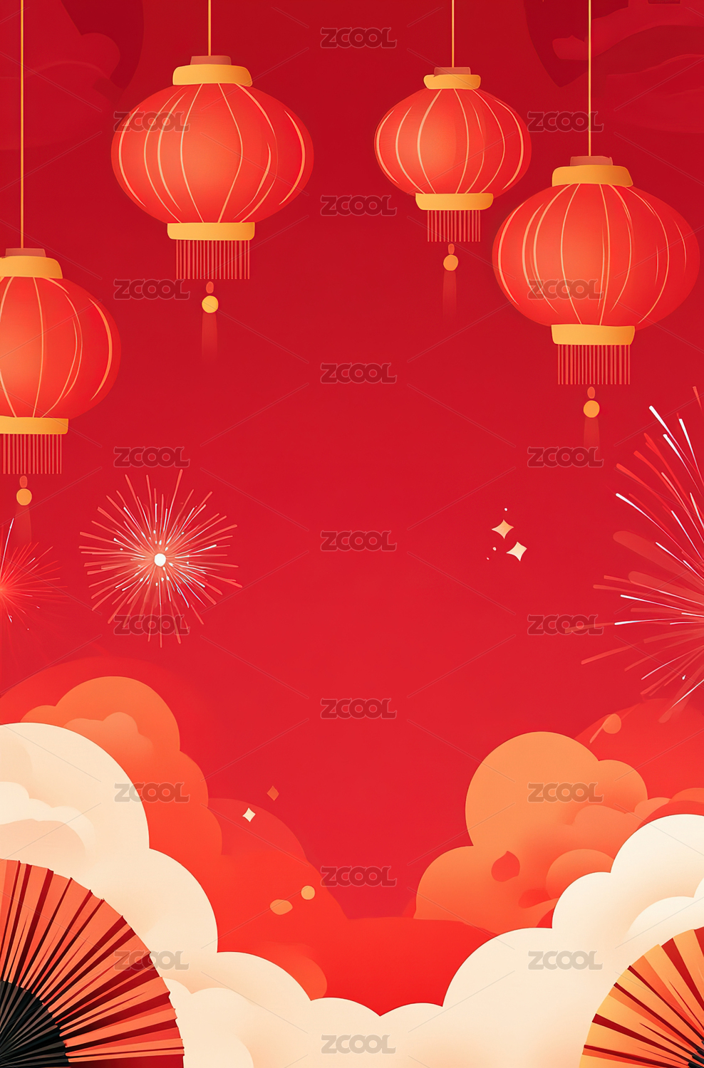 春节红色灯笼插画海报背景