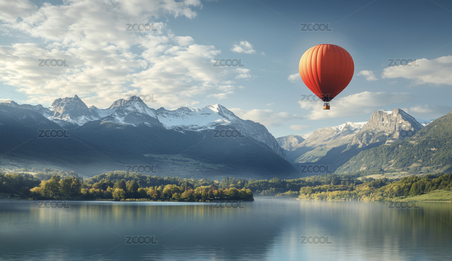 热气球飞越湖山美景