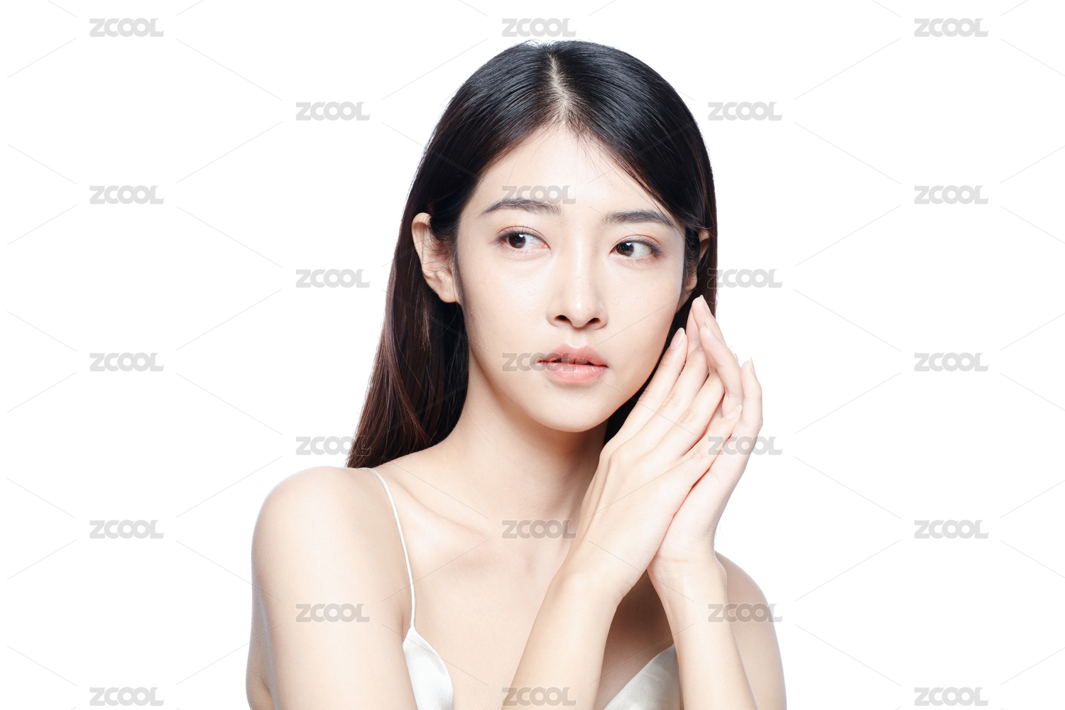 东方年轻女性双手抚摸脸颊