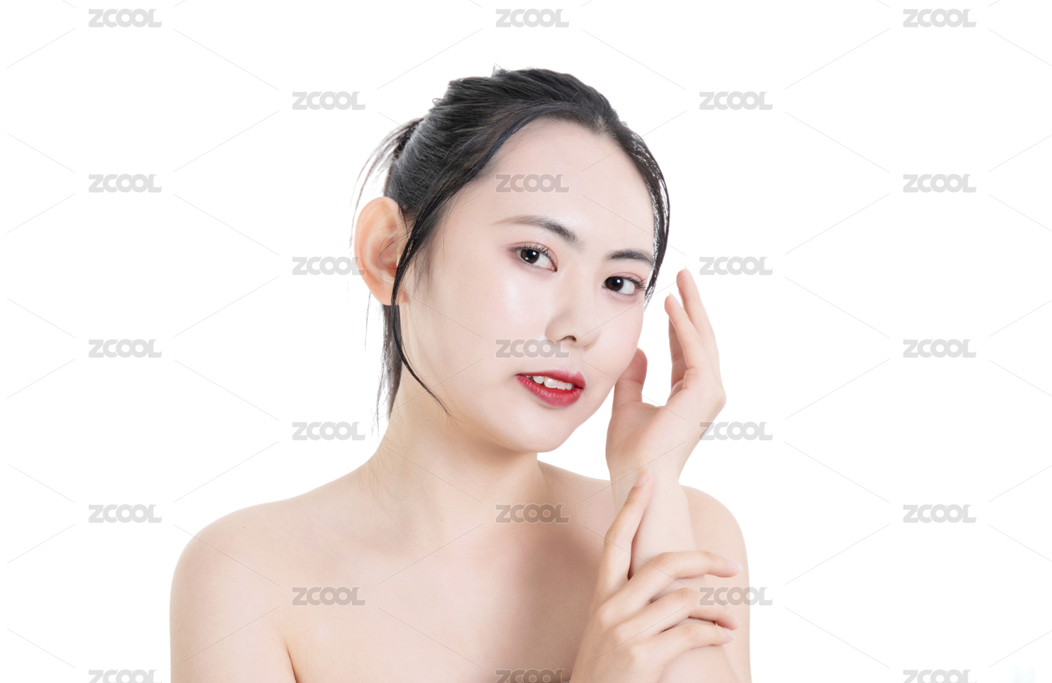 影棚拍摄年轻东方女性美容肖像