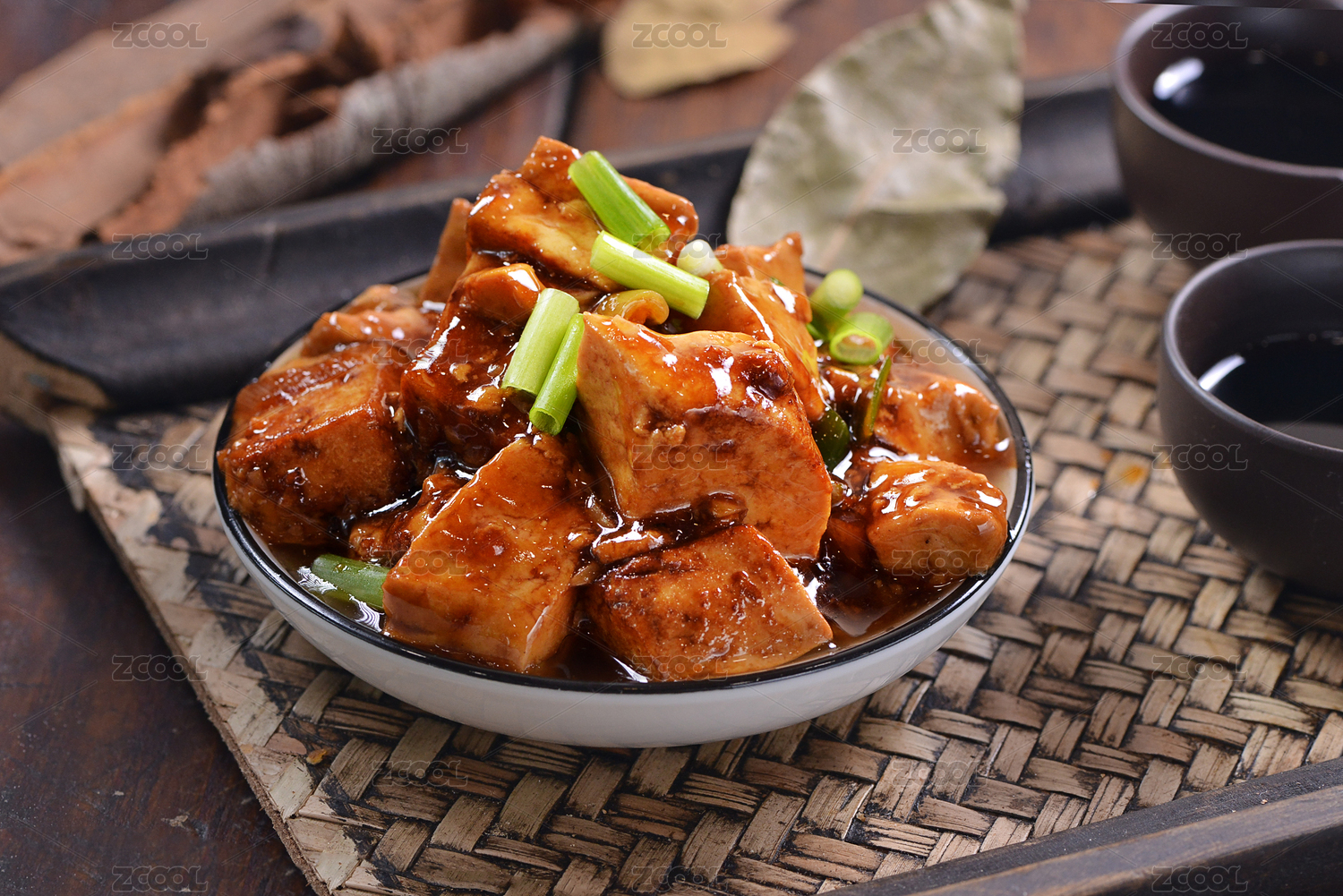 一盘酱牛肚酒壶酒杯茶水摆放在木桌面上