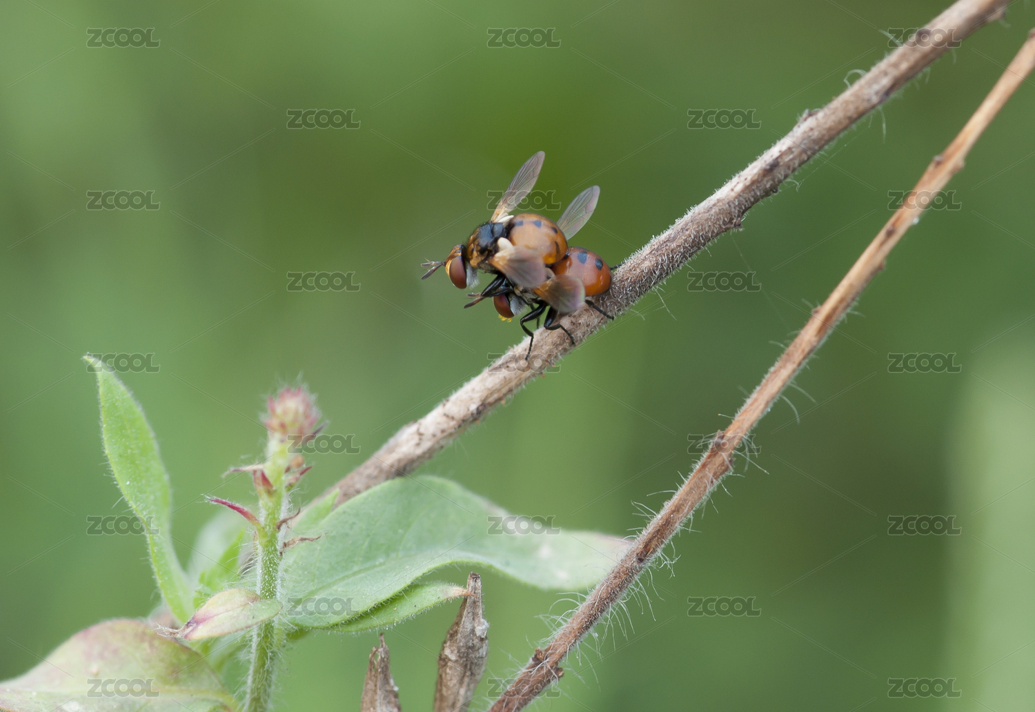 植物上昆虫特写镜头 丽蝇科绿蝇属动物