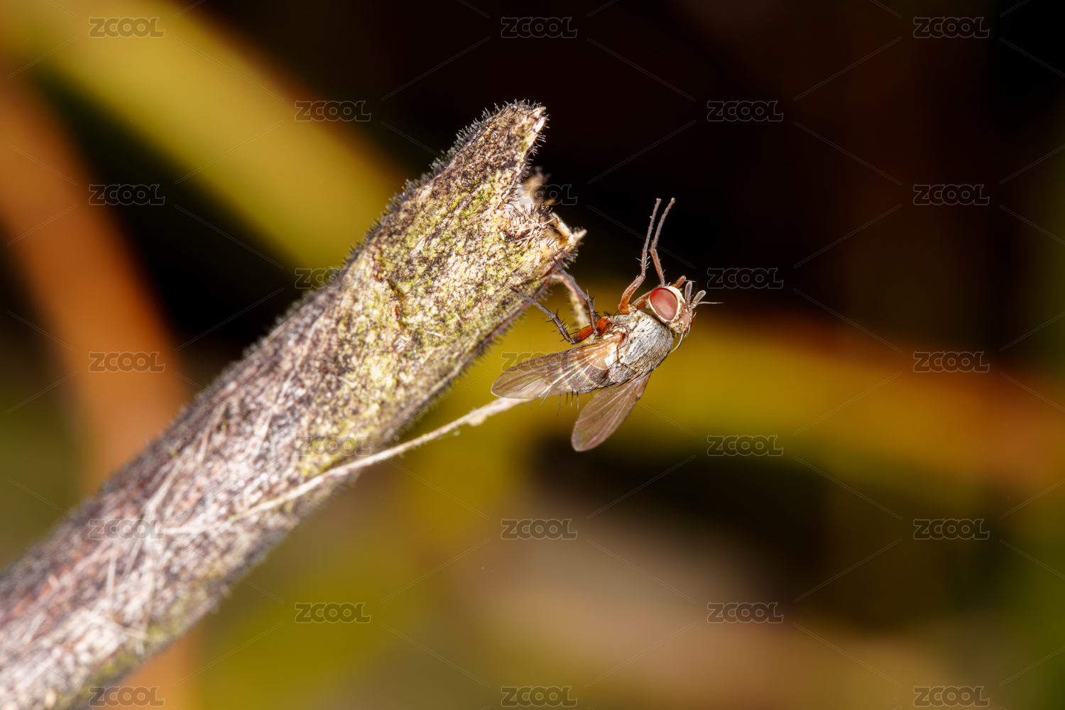 停留在树枝上的一只苍蝇近景特写
