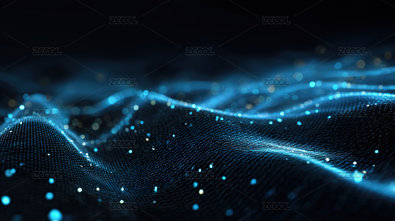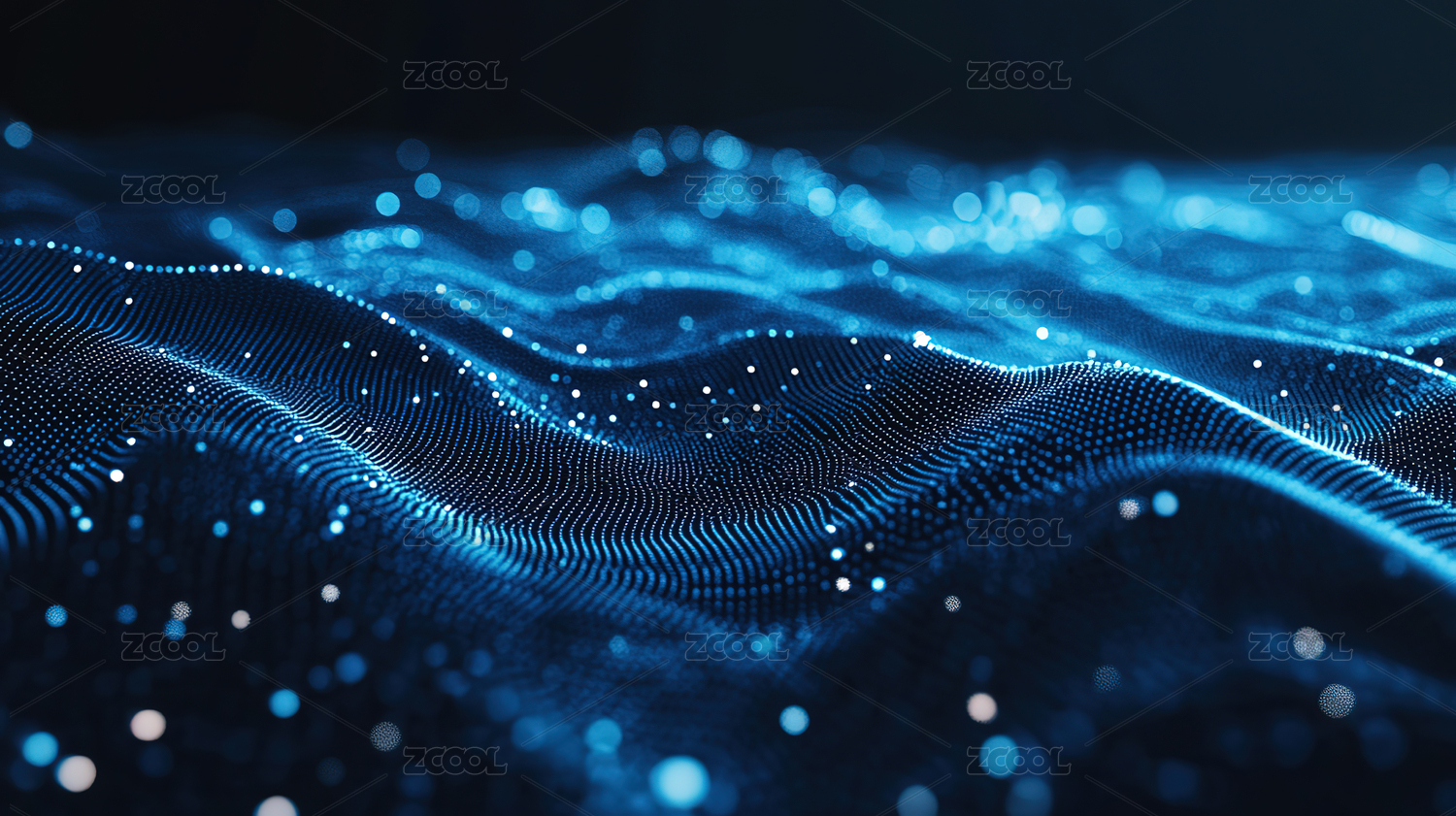 深蓝波浪状发光粒子图