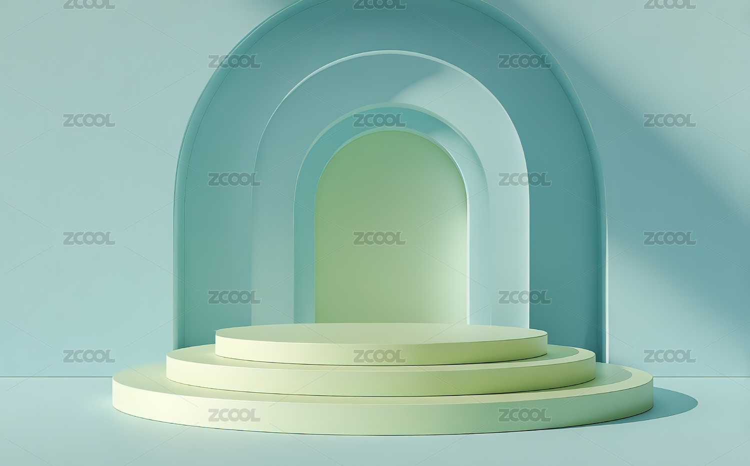 3D浅蓝色小清新拱门电商产品展台