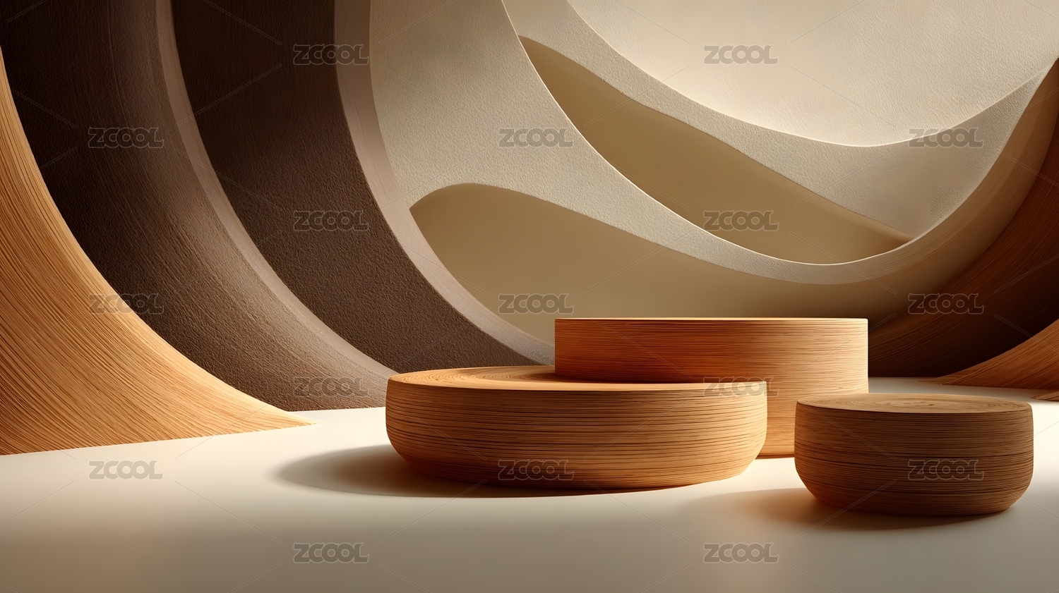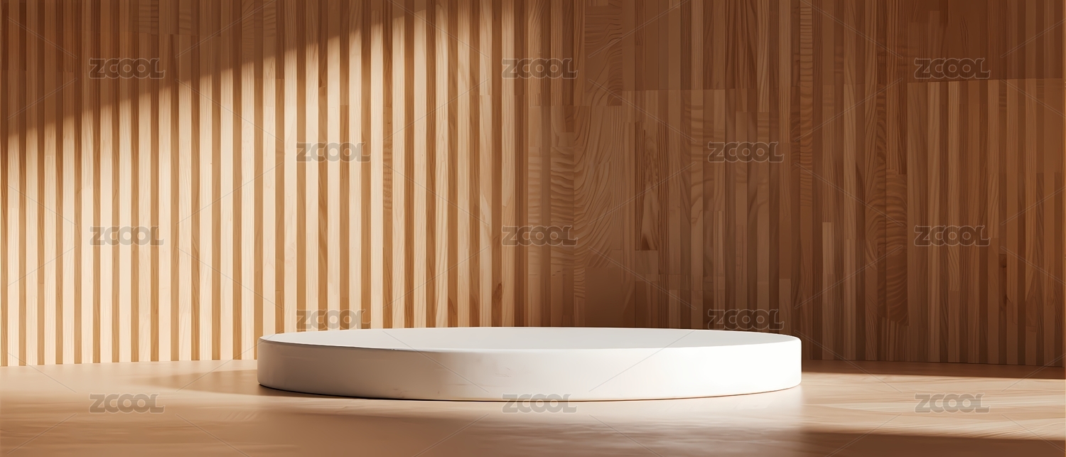 木质背景下的白色圆形展台