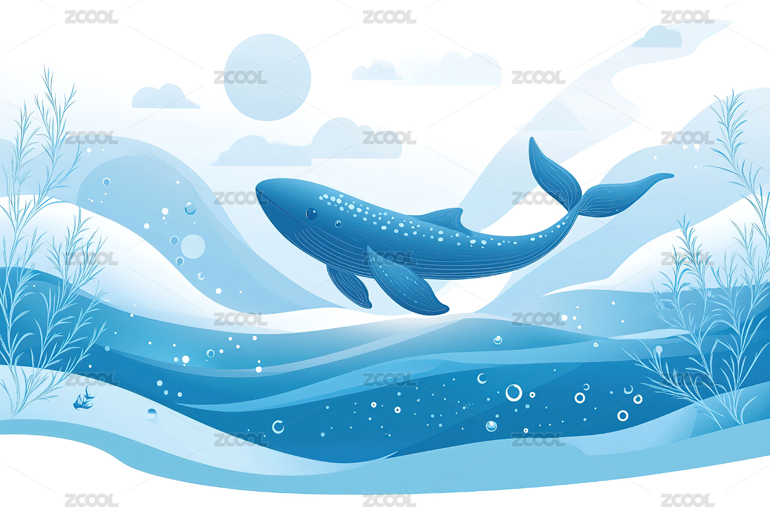 鲸鱼在海洋中游动的插画